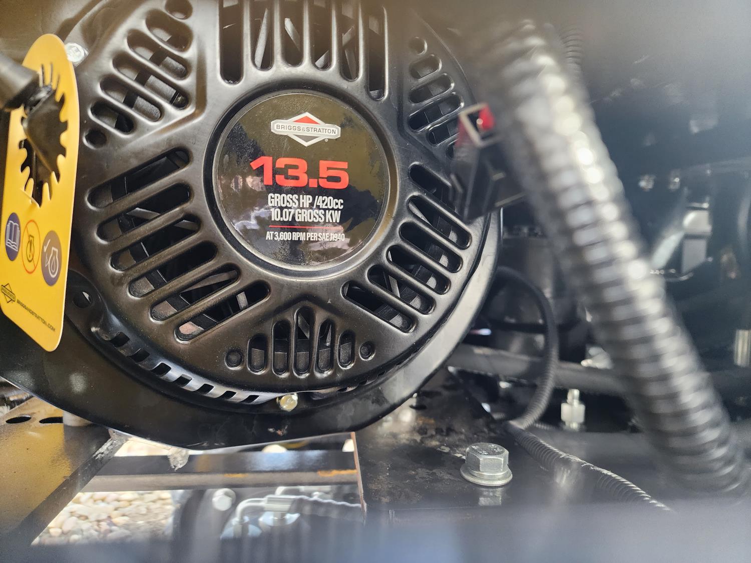 Open station, pilot controls, Briggs & Stratton 13.5 HP gas engine, LED work lights, 15 inch dig bucket, manual coupler, manual thumb, 1 auxiliary hydraulics, 2 Ft 7 inch stick, swing boom, backfill blade, 7 inch rubber tracks