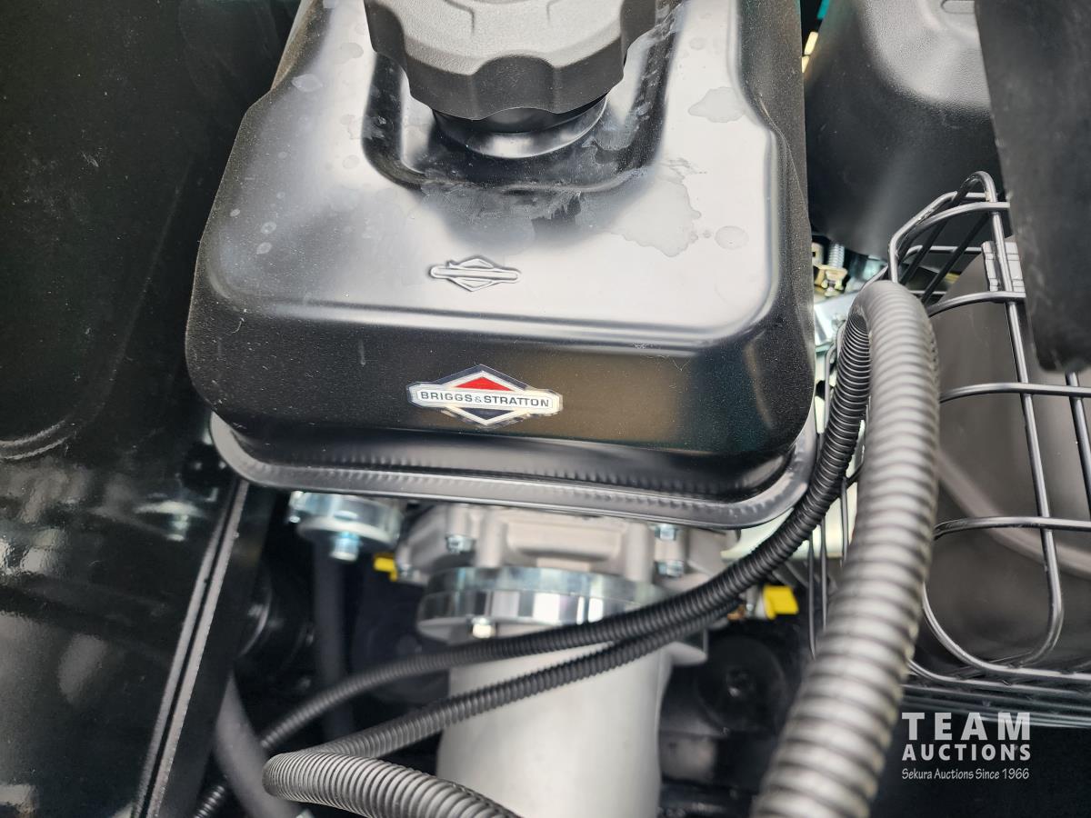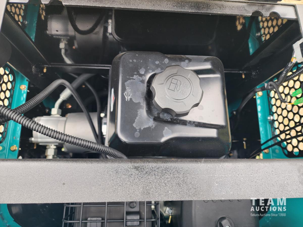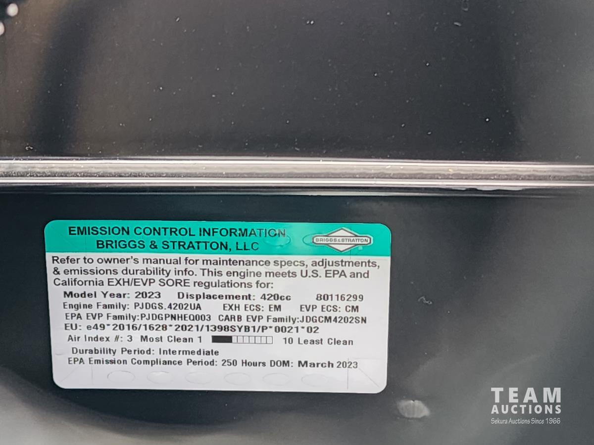 Briggs & Stratton 13.5 HP gas engine, 7 inch track width, 15 inch digging bucket, 38 inch blade, 31 inch stick, aux hydraulic, dozer, canopy