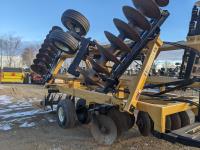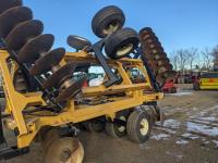front: 10.5 inch spacing, smooth 26 inch discs, , rear: 10.5 inch spacing, smooth 26 inch discs, , hitch leveling, scrapers, duals main frame and wings, 12.5SL-15 tires