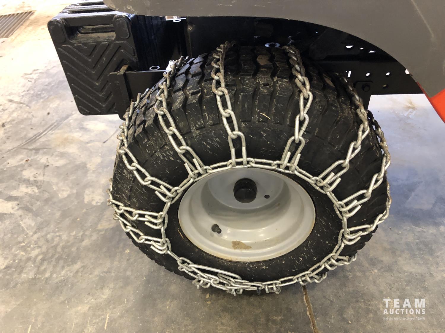 Kohler 7000 series 725 cc engine, hydrostatic transmission, 48 inch Berc snow blower, rear tire chains and counter balance weights