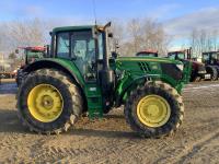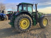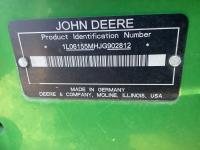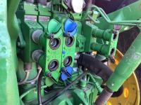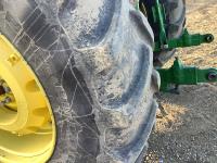 John Deere loader mounts, John Deere 6.8 L 6 cylinder 155 HP, engine, 123 PTO HP, 12 speed Power Quad partial power shift transmission, cab, left hand reverser, joystick, A/C, radio, buddy seat, grill guard, 540/1000 PTO, 3 point hitch, 3 rear hydraulic outlets, rear wheel weights, track weights, 420/85R28 front tires, 20.8R38 rear tires, front fenders