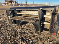 83 inch x 7 ft, multiple tool boxes, cabinets with adjustable galvanized shelves, receiver hitch, LED light