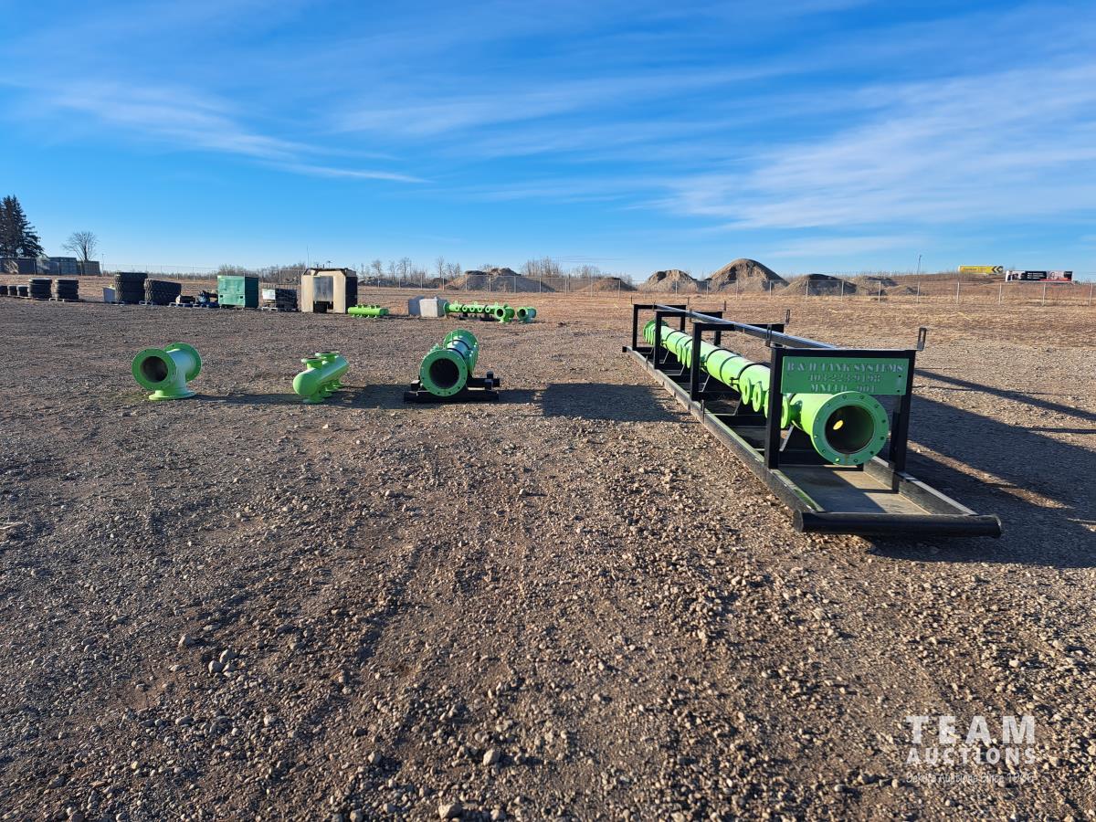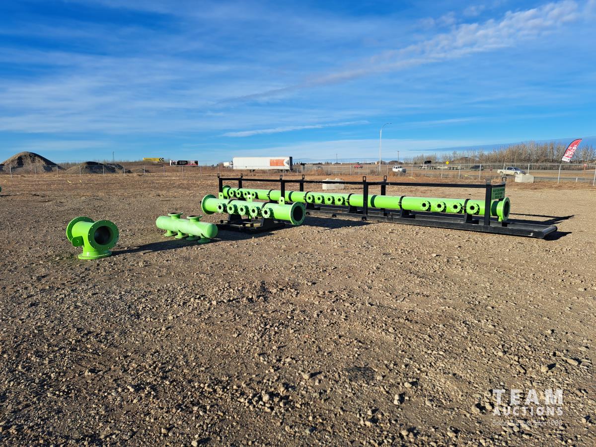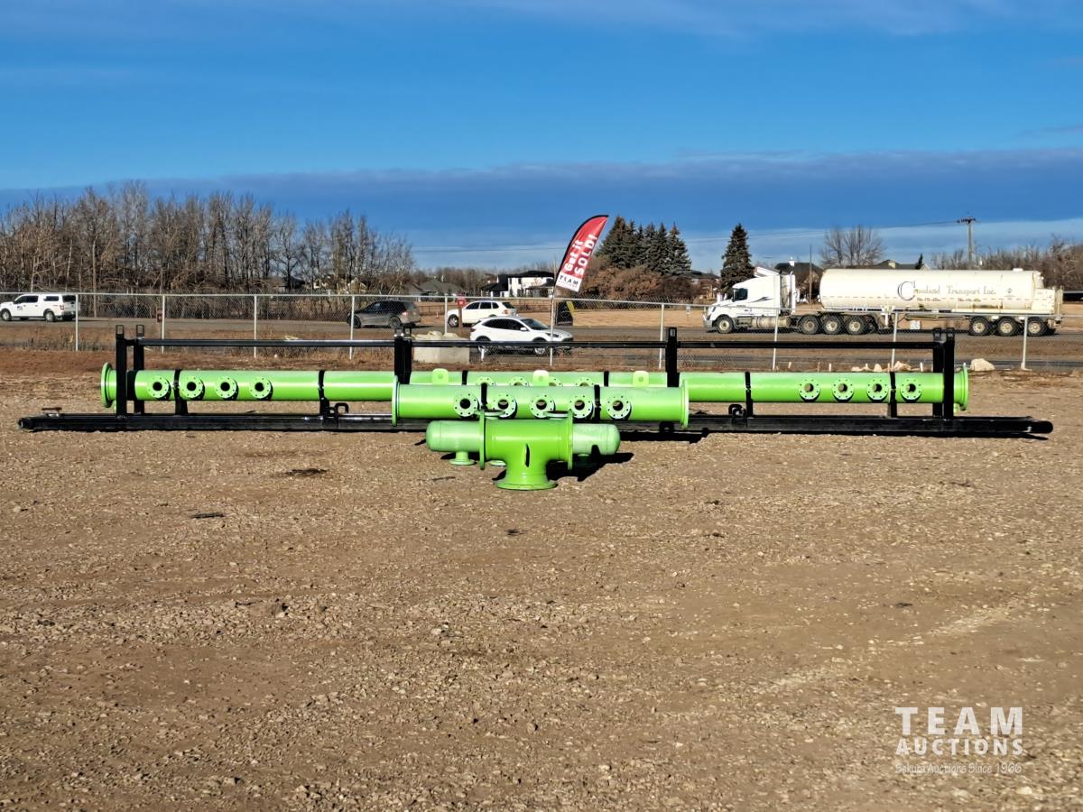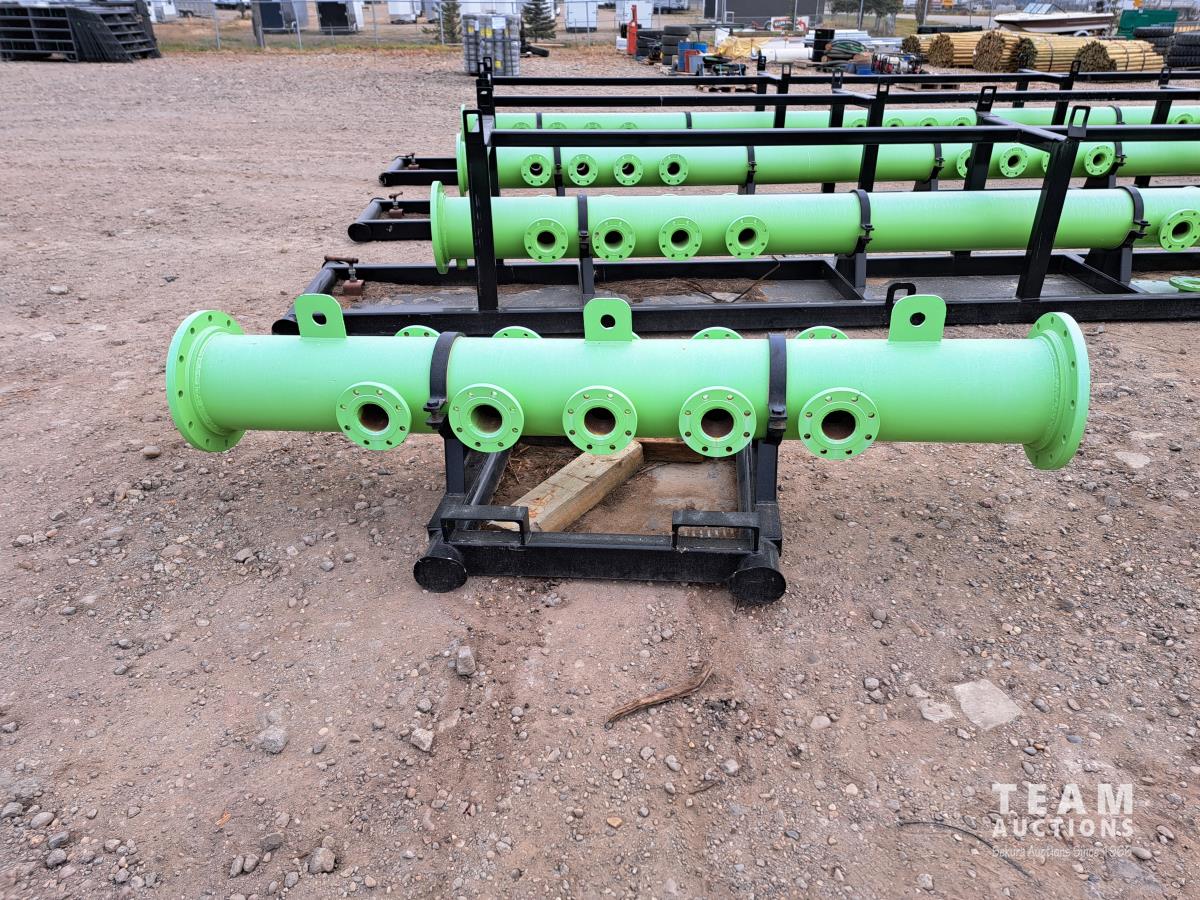 (1) - 35 ft long skids c/w 30 ft of manifold. 24 side outlets, 8 bolt 4 inch 150 and 12 inch 150 flanges, lifting hooks