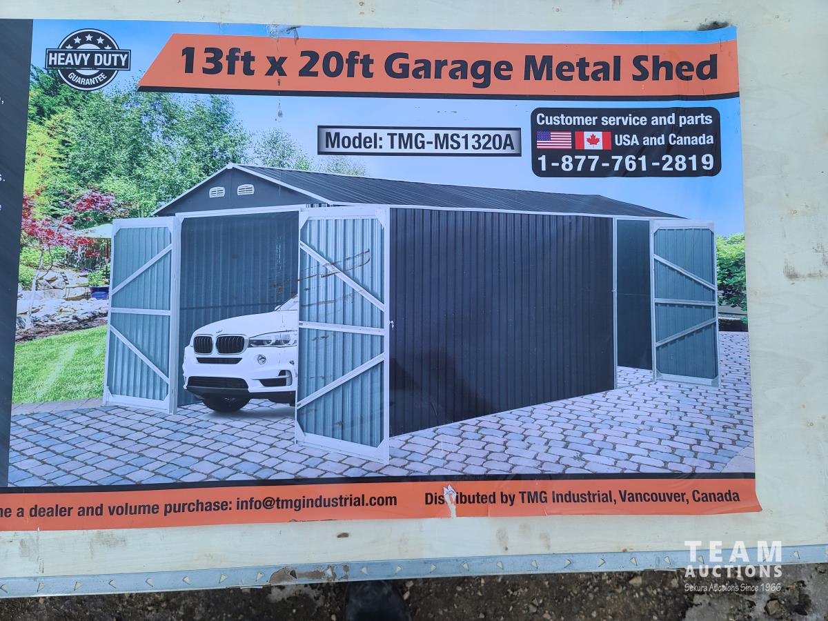 45 TMG Industrial TMG-MS1320A 13 Ft X 20 Ft Metal Garage Shed with Double Front Doors (Unused)