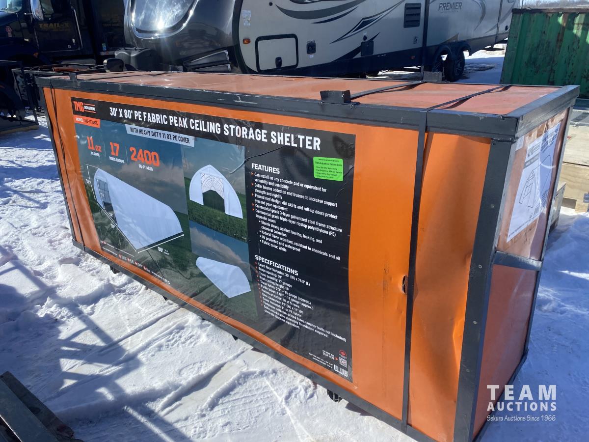 47 TMG Industrial TMG-ST3080 30 Ft X 80 Ft Peak Ceiling Storage Shelter (Unused)