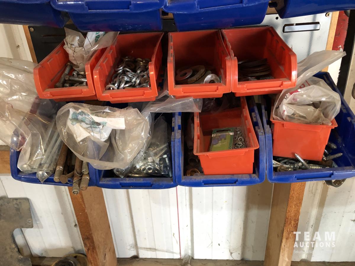 56 Bins with Assorted Bolts and Hardware