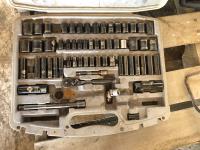 Set of hole saws, socket set, Dremel set, sledge hammer, pry bar and miscellaneous tools