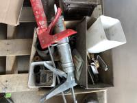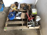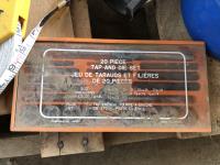 Tap & die set, lay flat hose, 200 ft measuring tape, 1500W engine heater, miscellaneous items