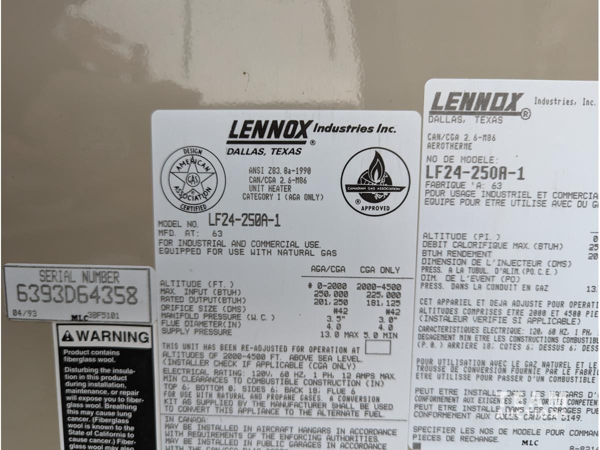472 Lennox LF24-250A-1 250000 BTU Horizontal Natural Gas Heater