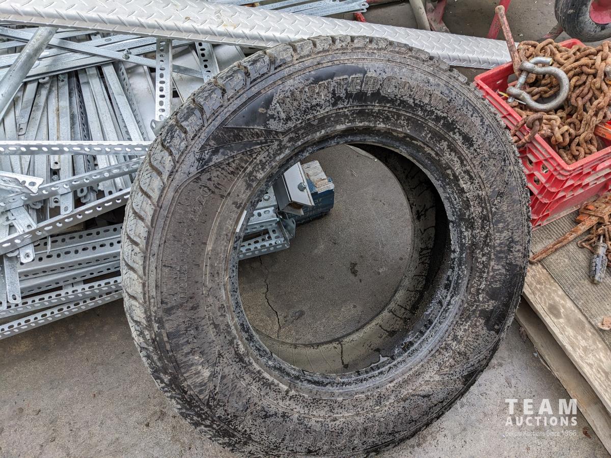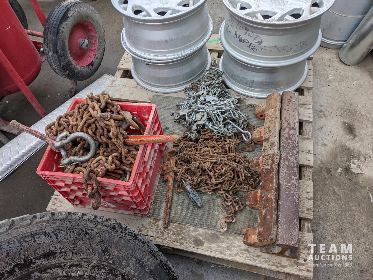 247 (4) 7-JJ x 16-37 Aluminum Toyota Rims, 215/70R18 Tire, Qty of Chains, Boomers and Clevis
