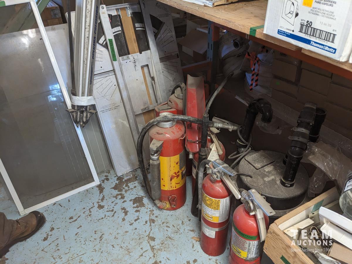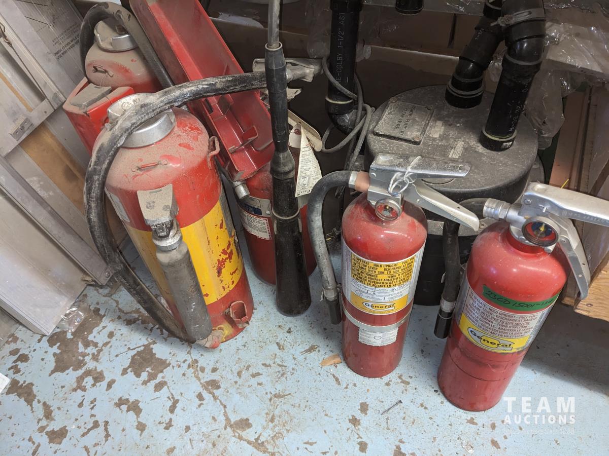 125 (5) Fire Extingushers, Sump Tank, Aluminum Tripod, Aluminum Workbench/Table, Plexiglass