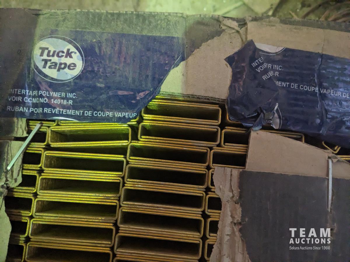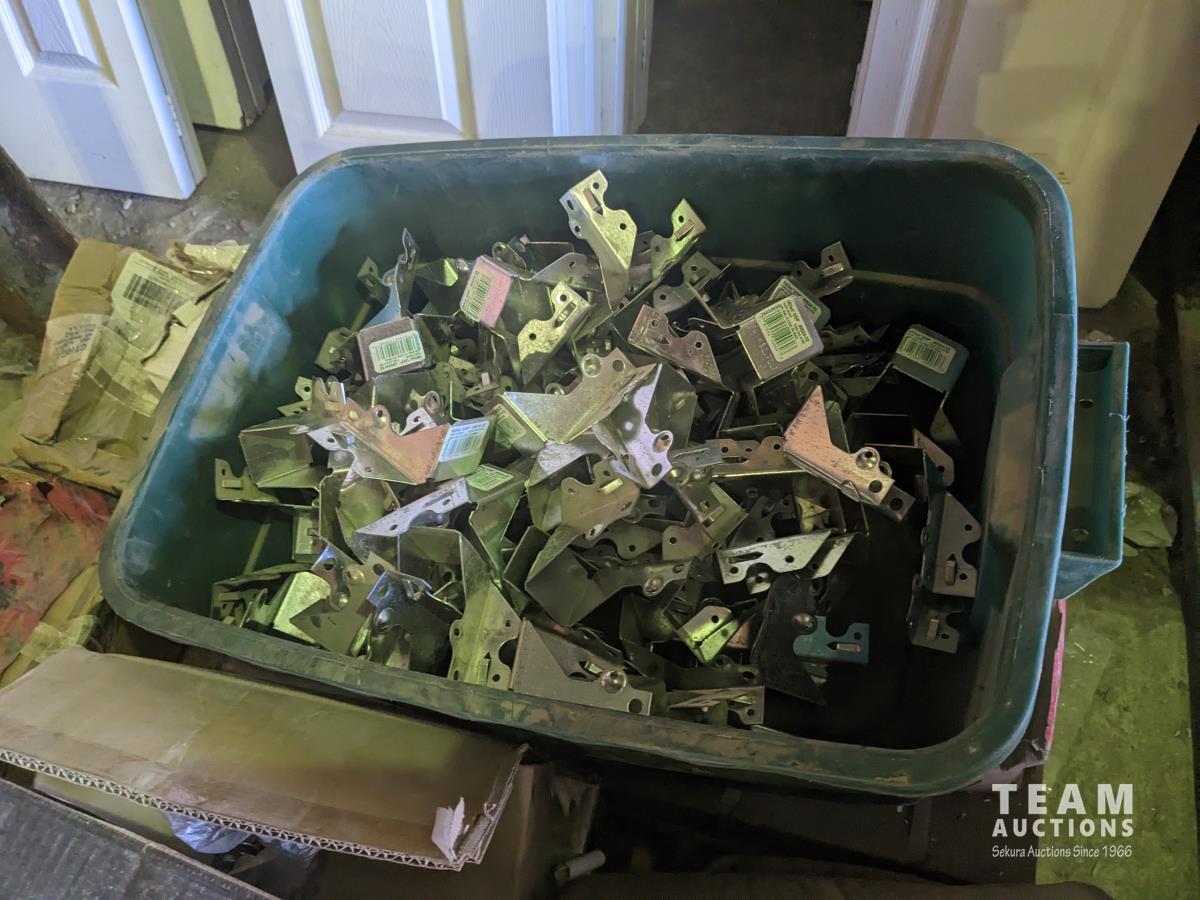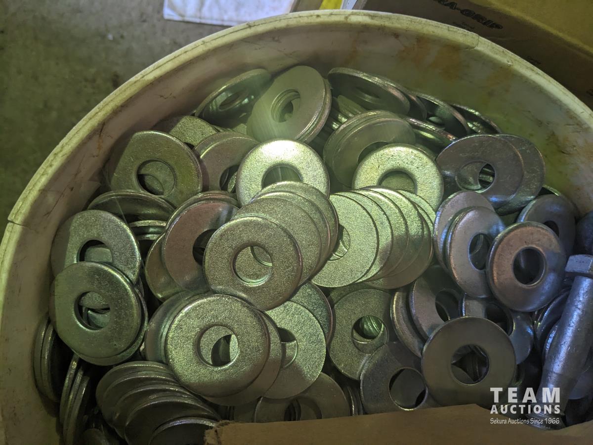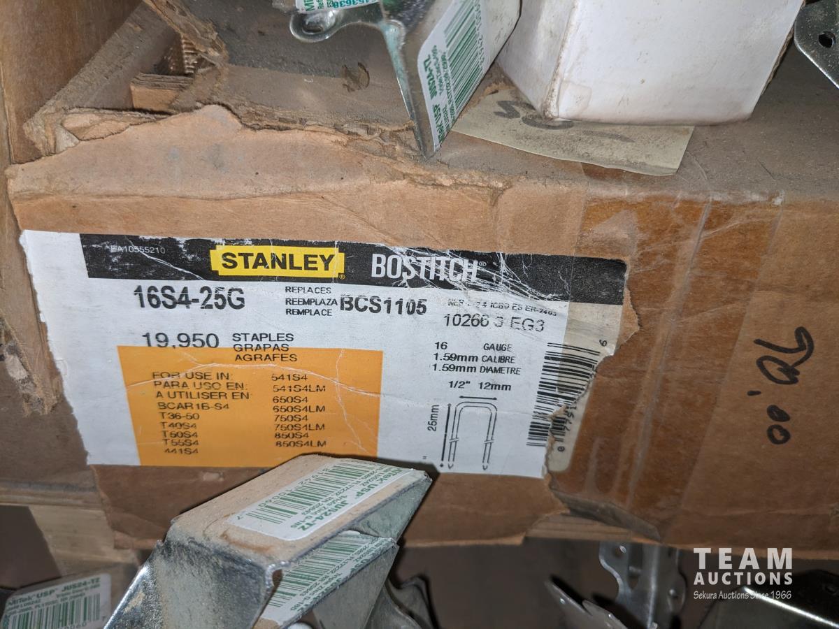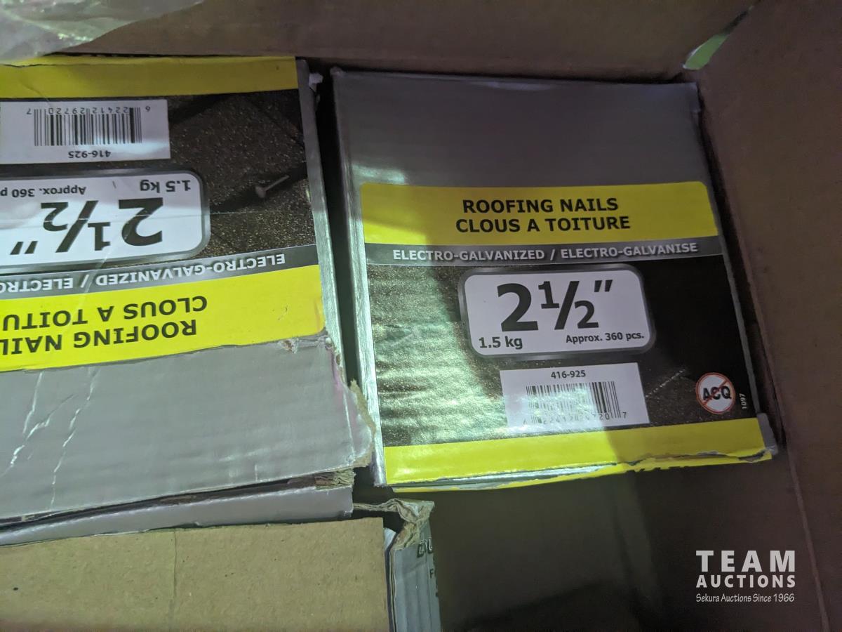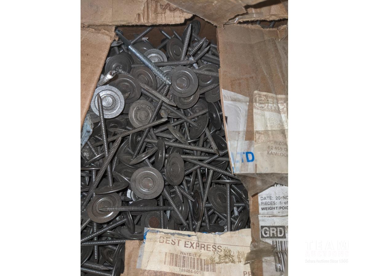 quick drive screws, assorted washers, joist hangers, various sized nails, 2-1/2" roofing nails, air gun coil nails, staples
