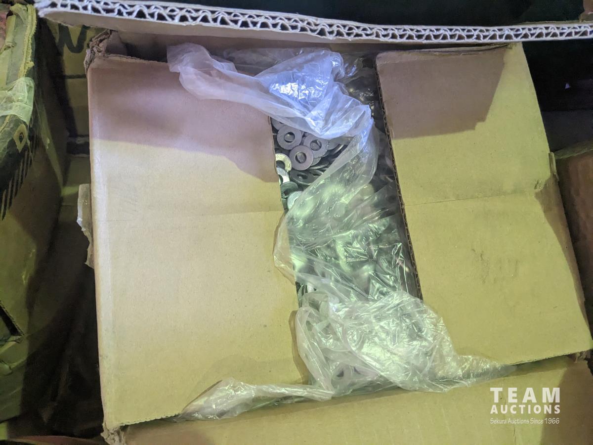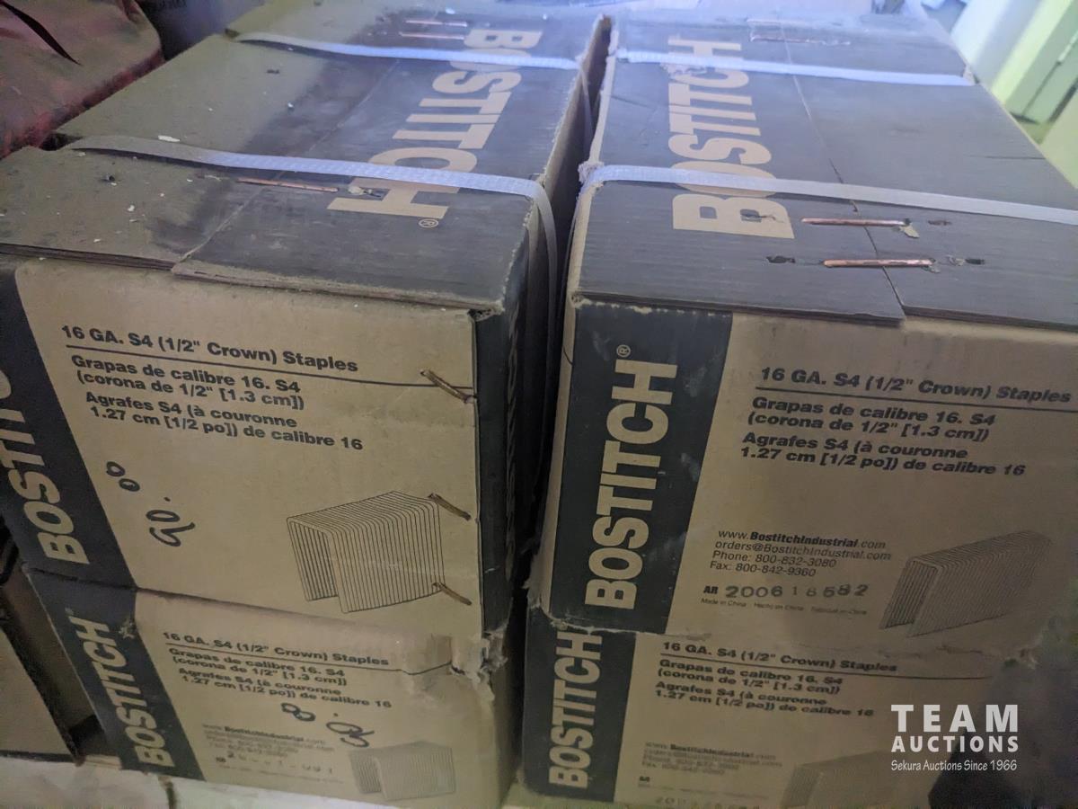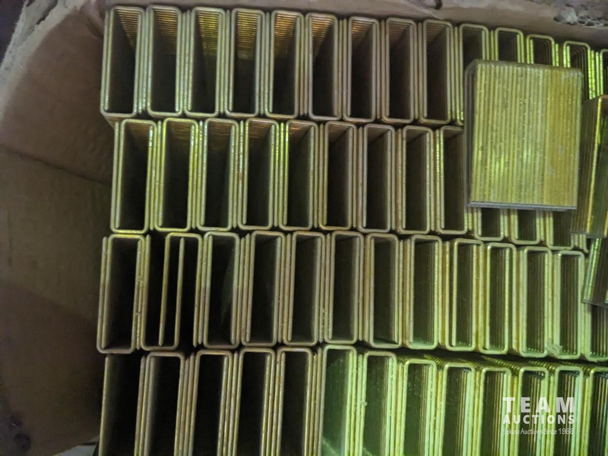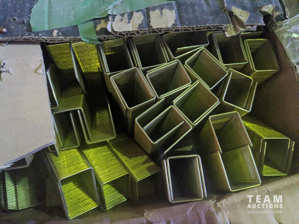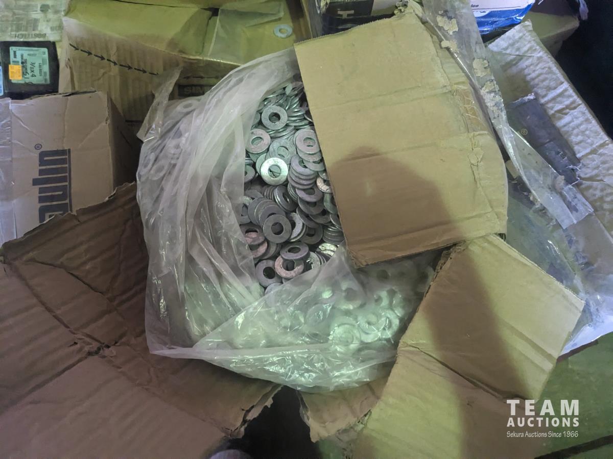 quick drive screws, assorted washers, joist hangers, various sized nails, 2-1/2" roofing nails, air gun coil nails, staples