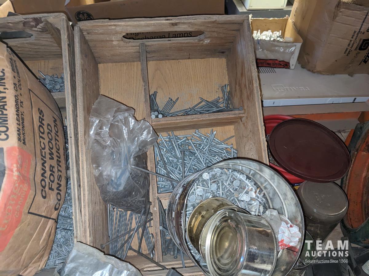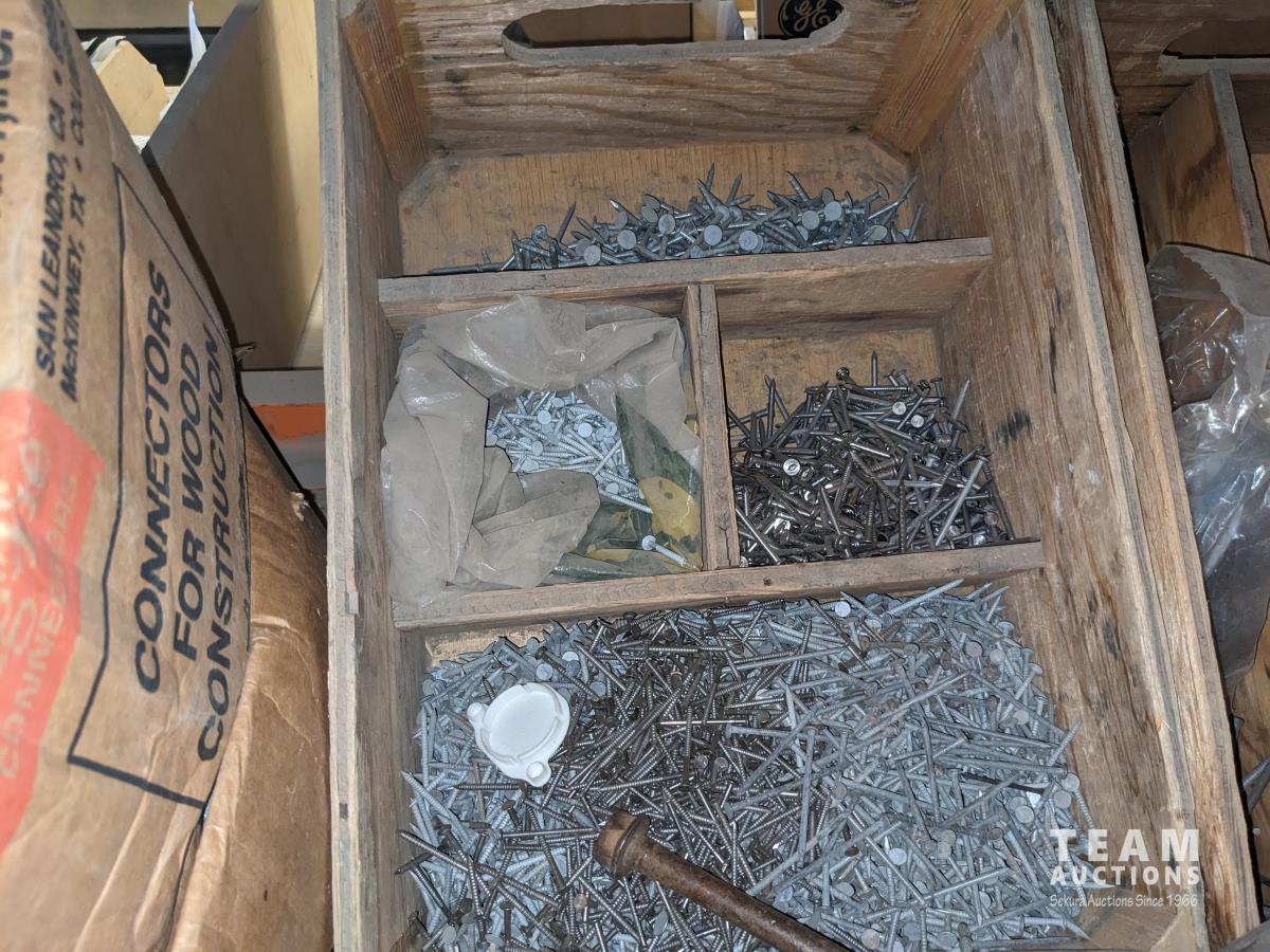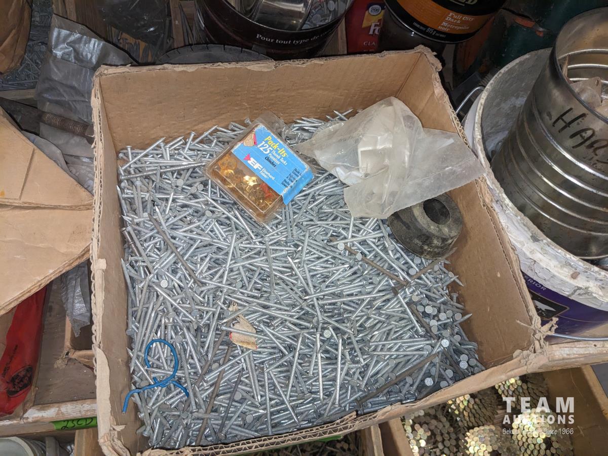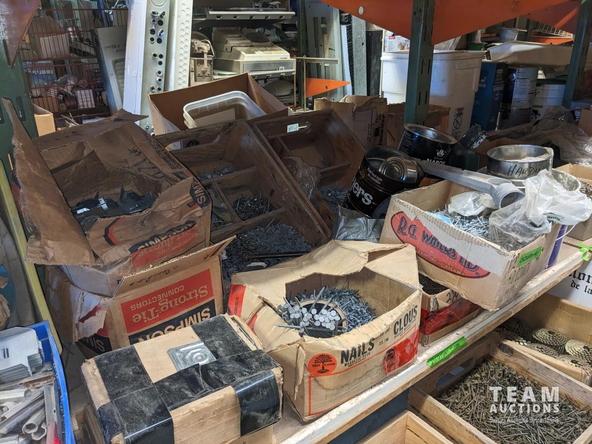 Nails, nuts and bolts, hardware, joist hangers, roof grips, large pipe clamps