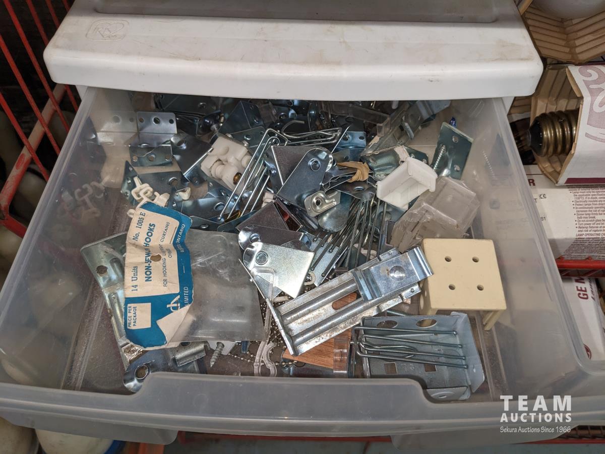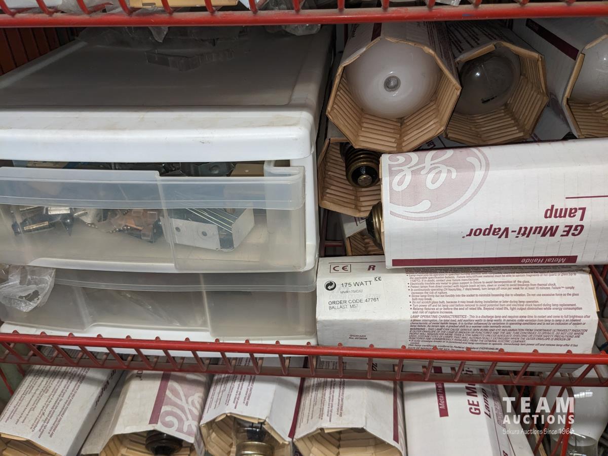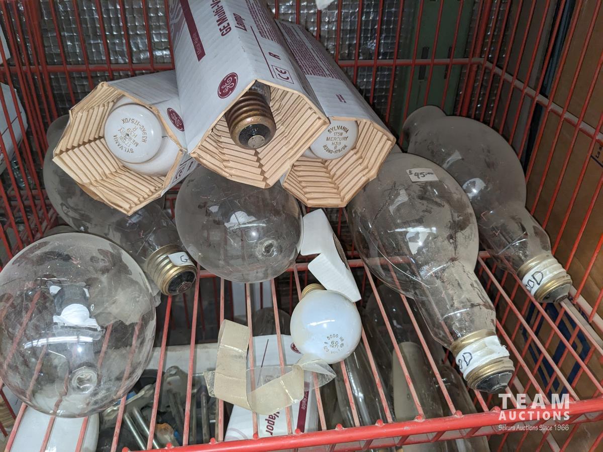 69 Qty of Bulbs, (2) Electrical Box Panels, Misc Blind Hardware