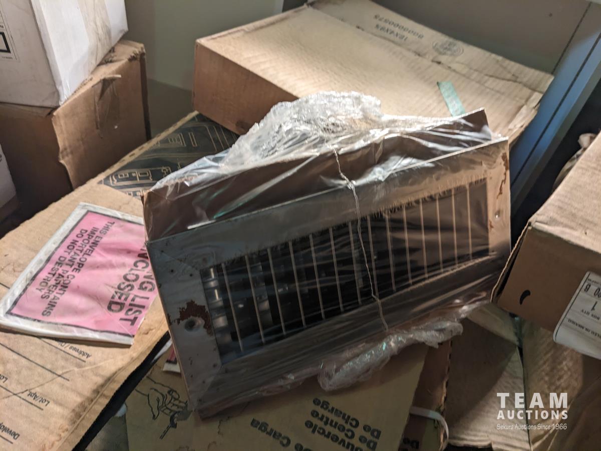 (3) boxes of flexible conduit, (2) boxes of electrical boxes, (2) floor registers, (2) boxes of low voltage wire, (4) metal panels, square breaker panel covers
