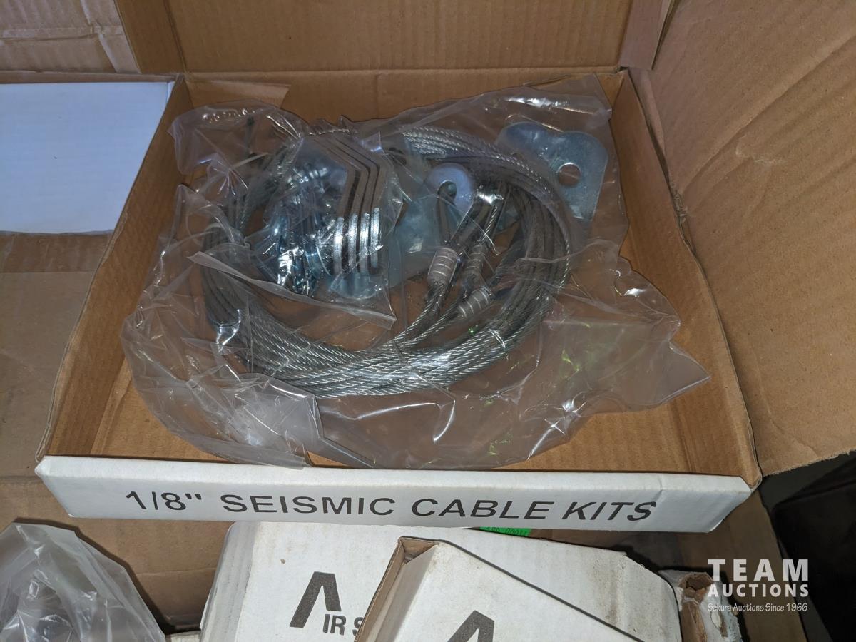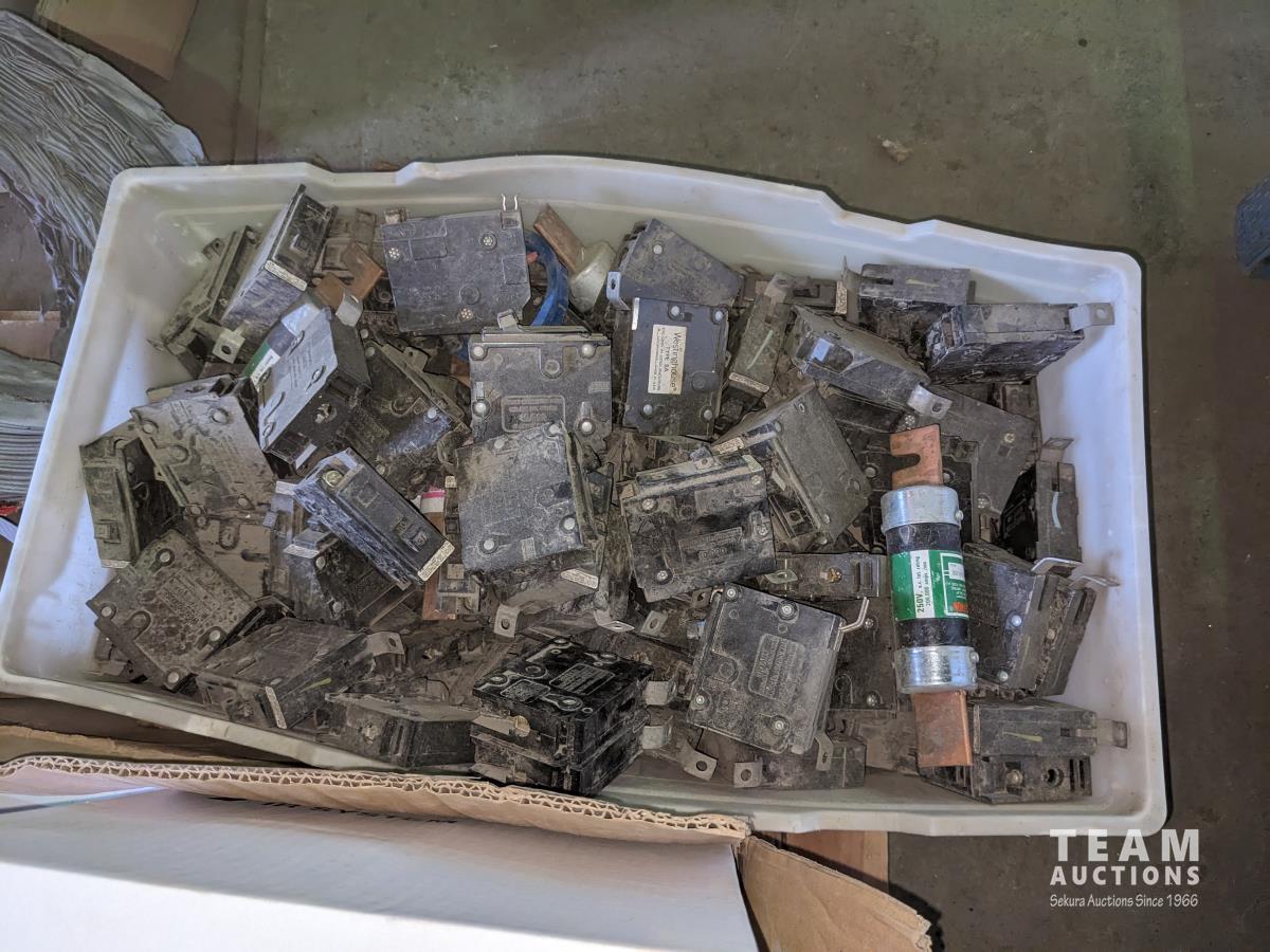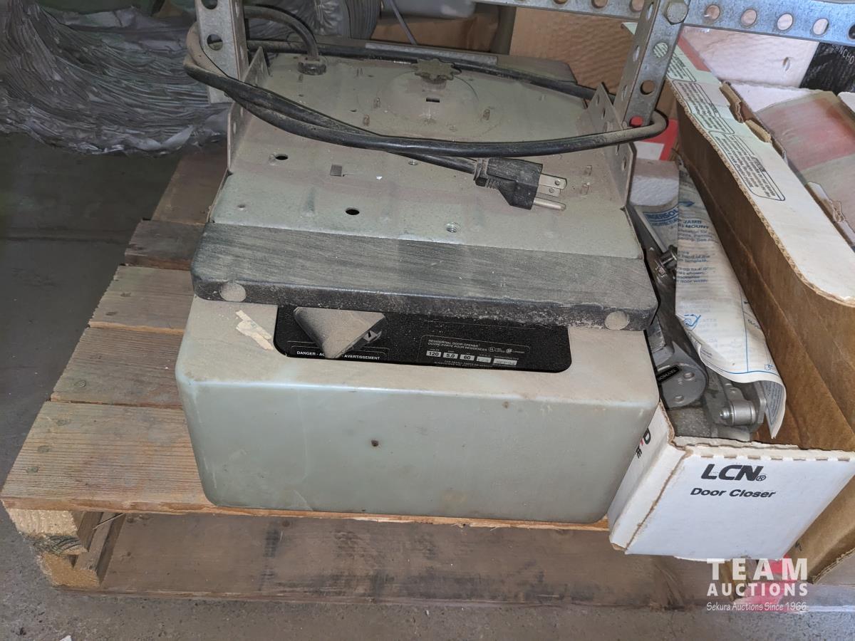 Qty of light shades, ridge cap shingles, door closers, electrical breaker, various hardware, cable kits, 8 inch and 6 inch, flexible duct, perma barrier, garage door opener power heads