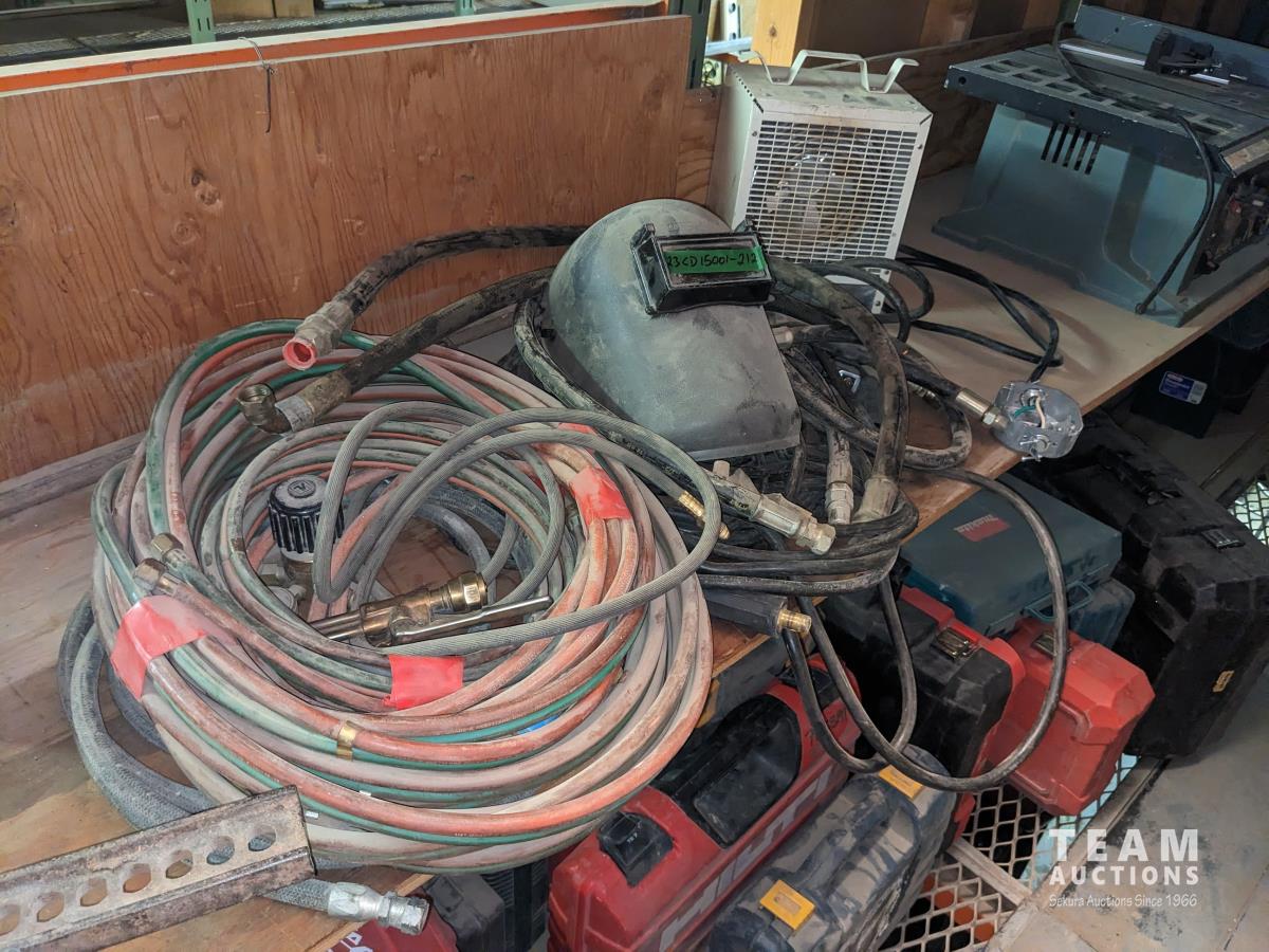 Welding cables, torch parts and hose, 240v construction heater, welding helmet, miscellaneous hose