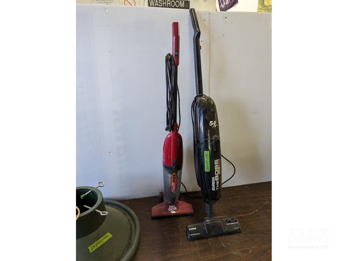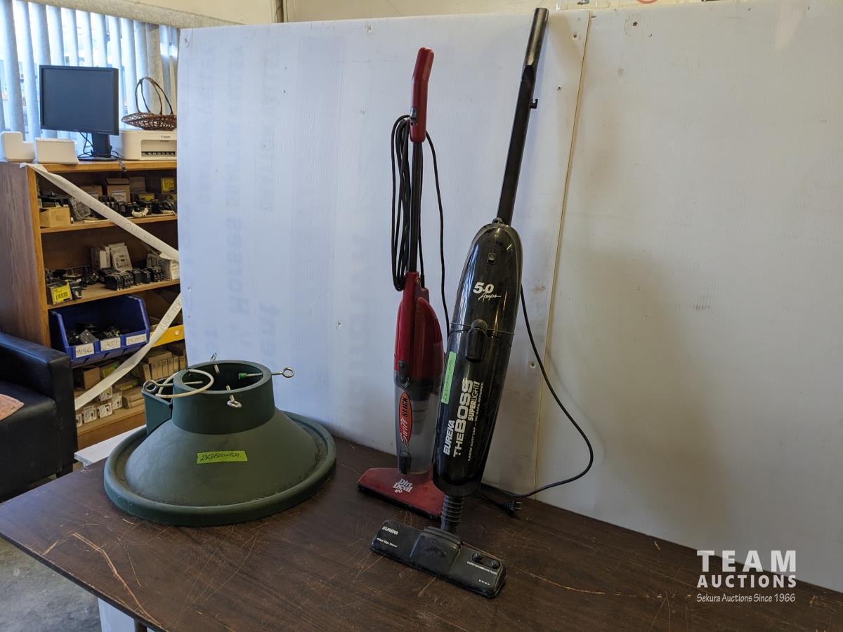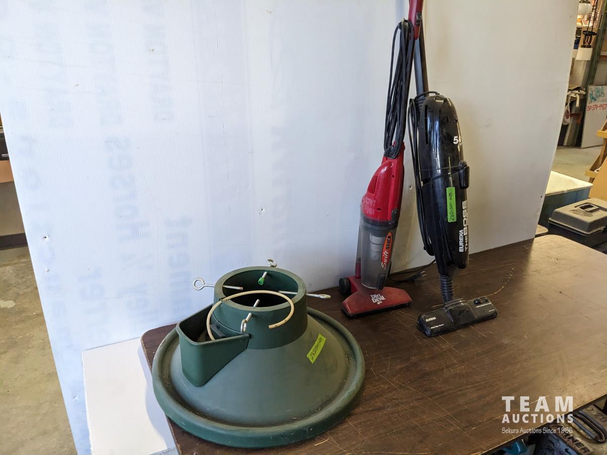 184 Xmas Tree Stand, Dirt Devil and Eureka Boss Upright Vacuums