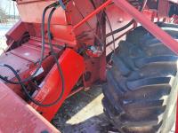 International 810 11 ft pick-up header, chaff spreader, chopper/straw spreader, hydro, 3127 engine hrs, 28L-26 front tires, 10.00-16 rear tires