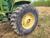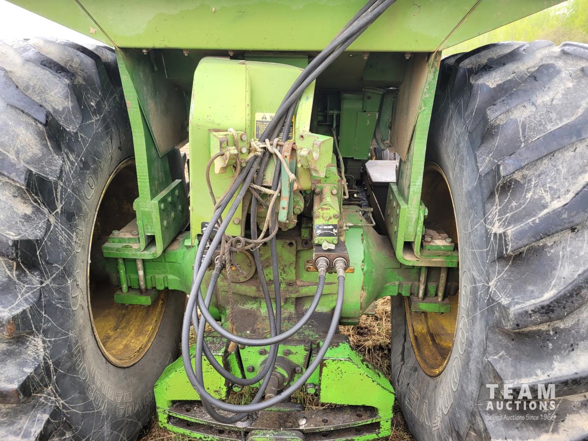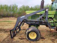 Ezee-On loader, bale forks, John Deere 6.6 L 6 cylinder 150 HP, engine, 135 PTO HP, 8 speed power shift transmission, cab, rear differential lock, 1000 PTO, 2 rear hydraulic outlets, 11.00-16 front tires, 24.5R32 rear tires