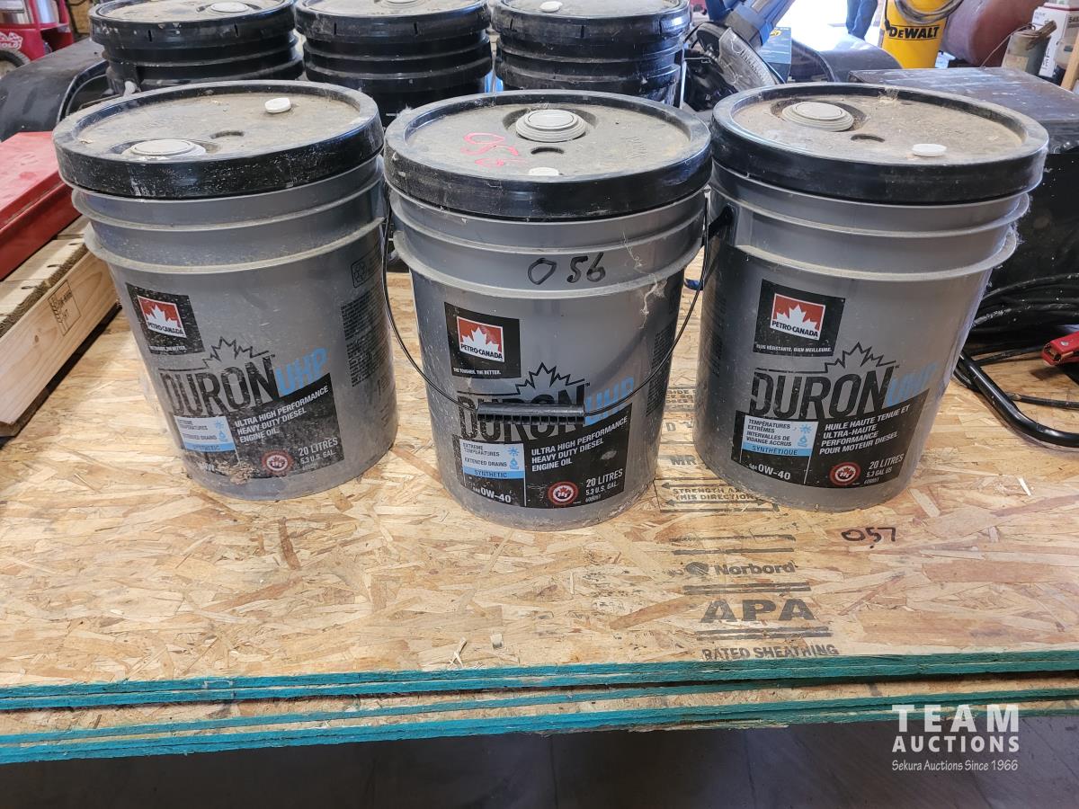 3 pails of gear oil, 3 pails of 0-40 engine oil