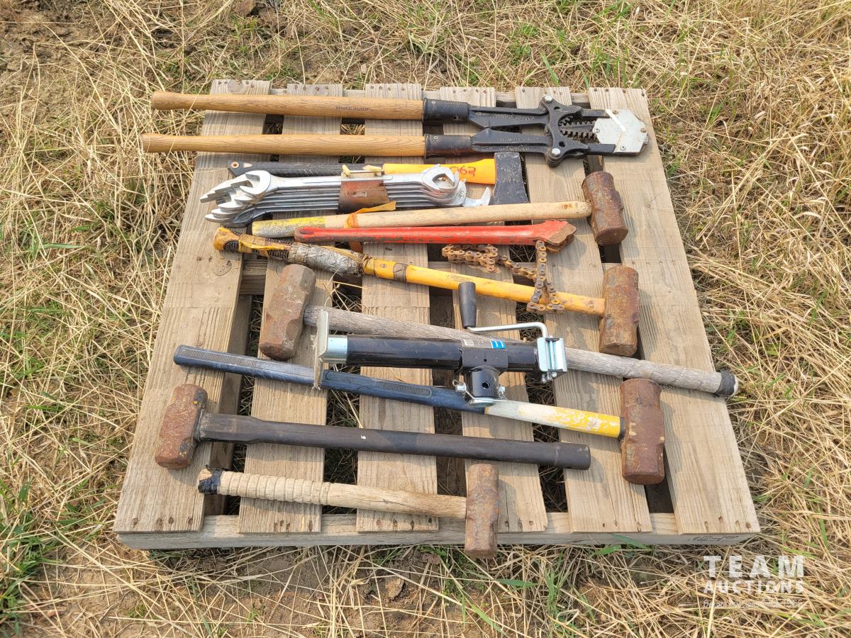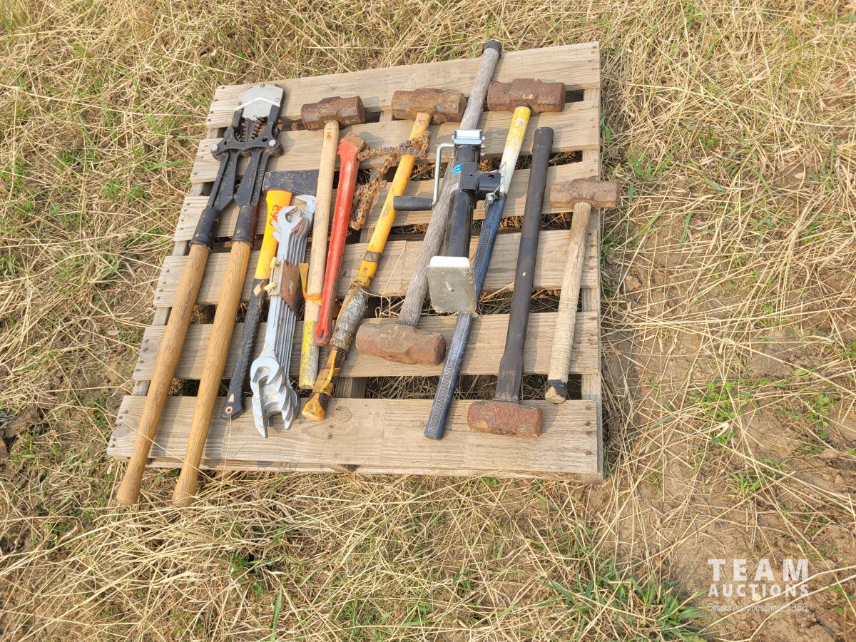 13 Assortment of Sledge Hammers, Wrenches & Dehorner