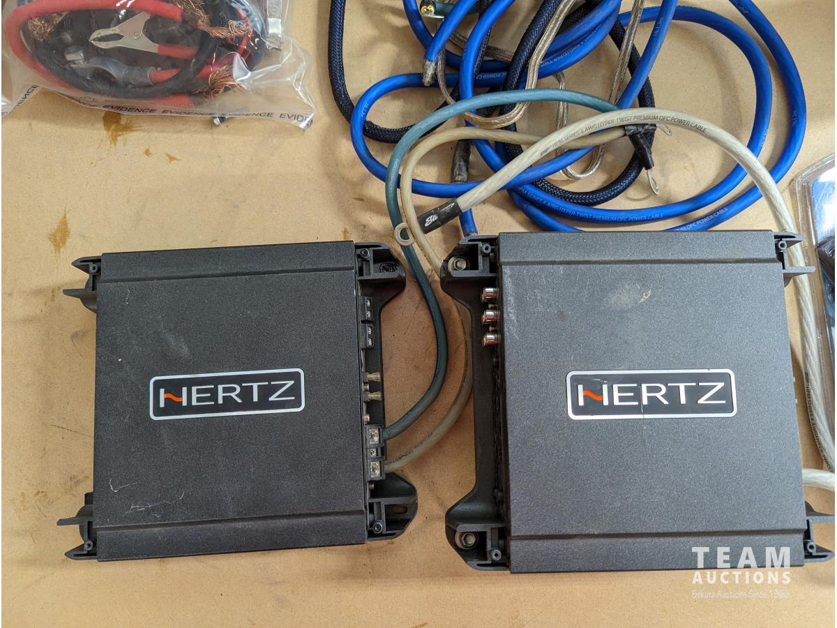 Kenwood deck, (2) Hertz 4 channel amp, 4ga amp wiring kit, Ection Capacitor, miscellaneous wiring