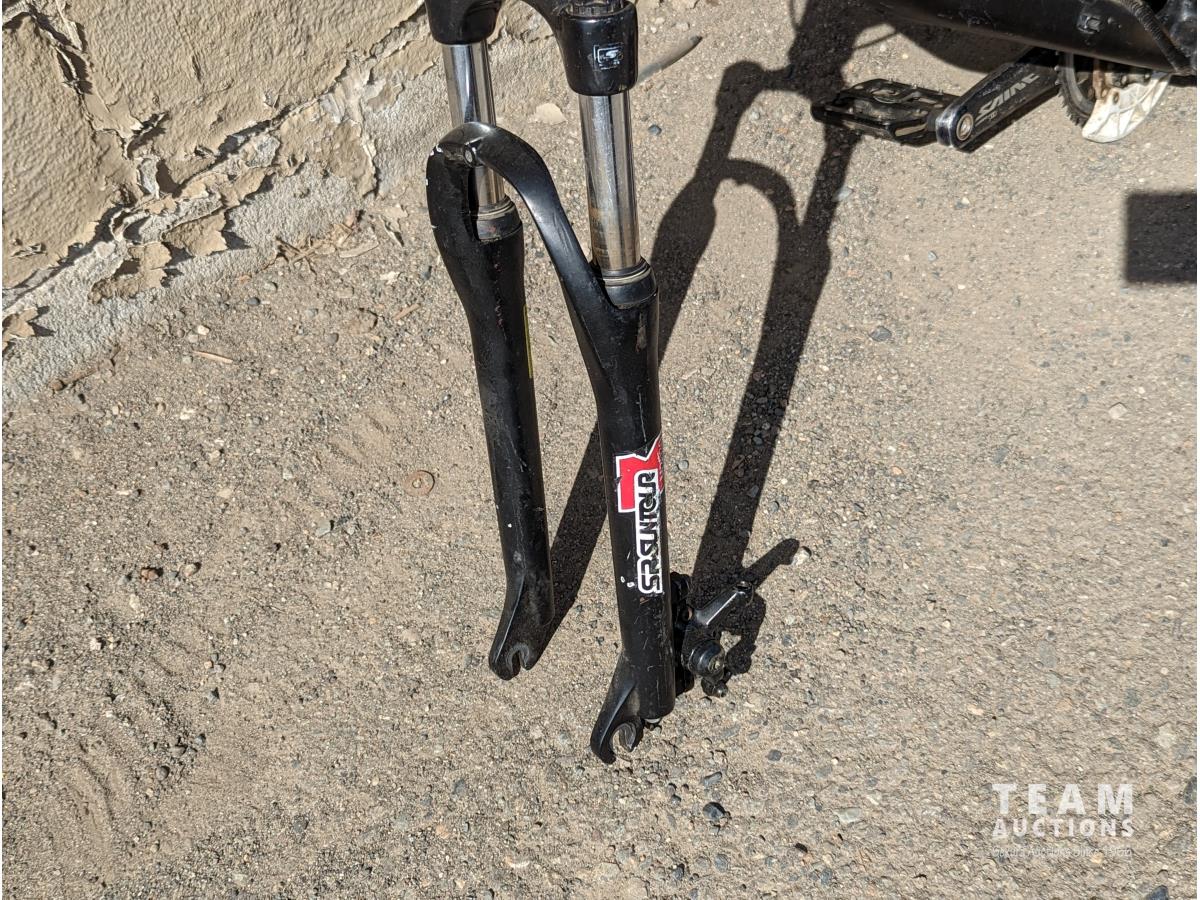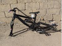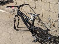 Disc brakes, dual suspension, missing wheels and tires