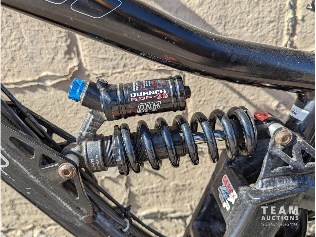 Dual Suspension, bomber front shock, DNM rear shock, disc brakes, 8spd