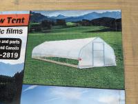 With 6 mil clear EVA plastic film, cold frame, hand crank roll-up sides, Peak ceiling roof