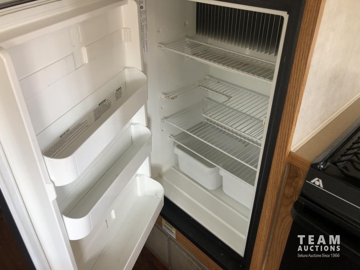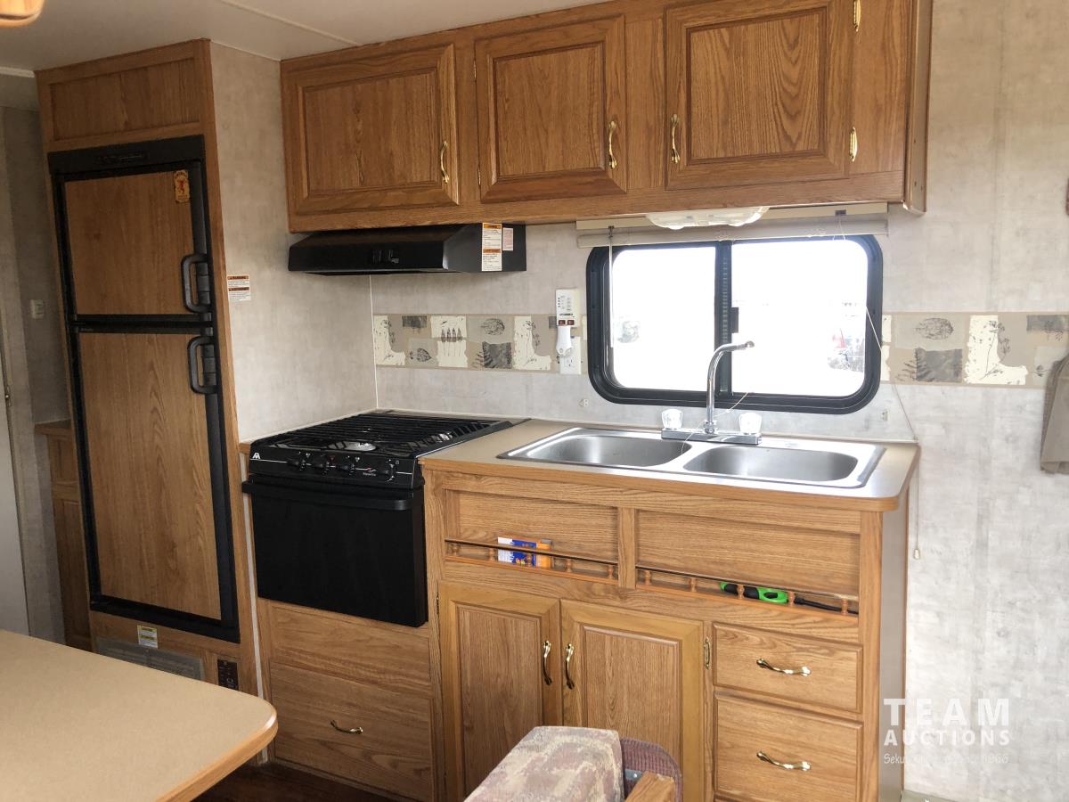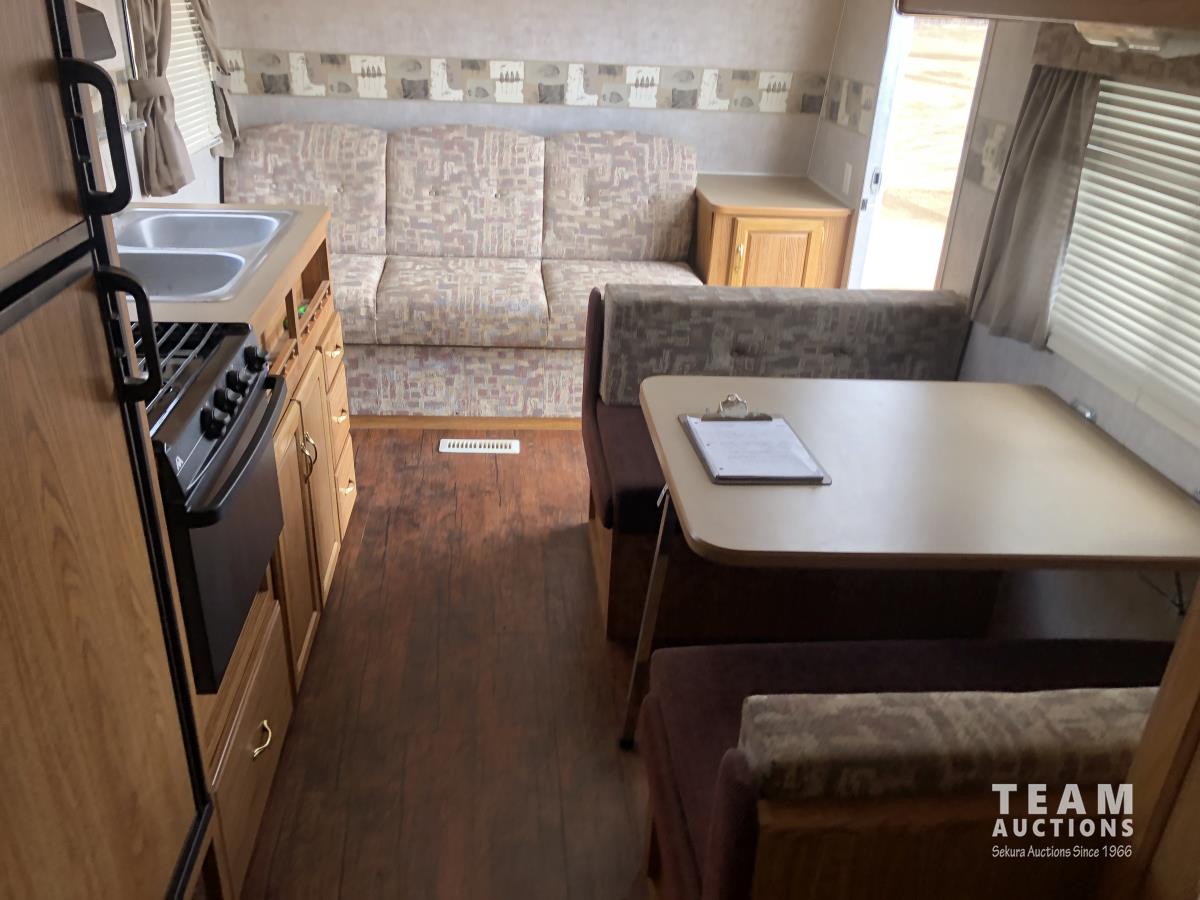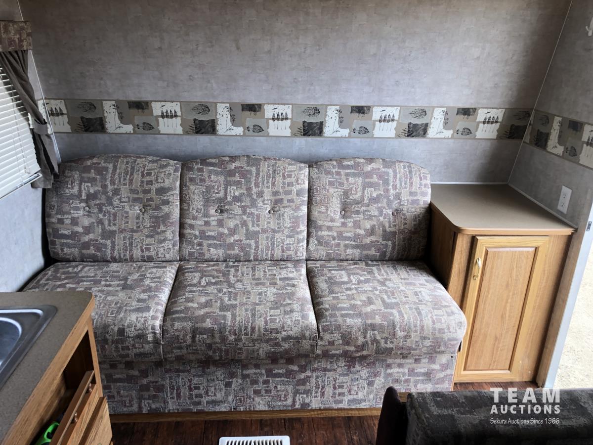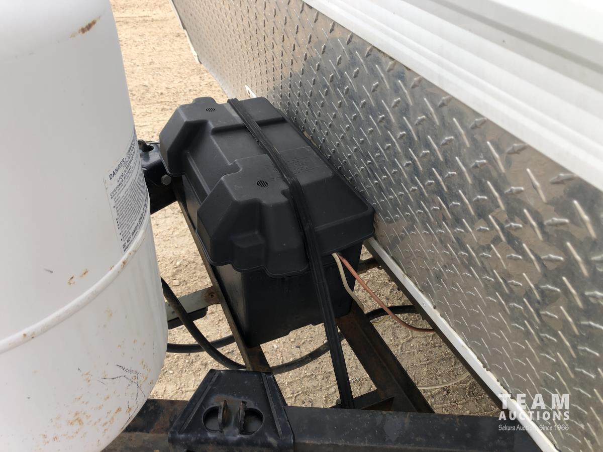 12 ft awning, fridge, bathroom, stereo/CD, (2) 30 lb propane bottles, (4) manual leveling jacks, storage