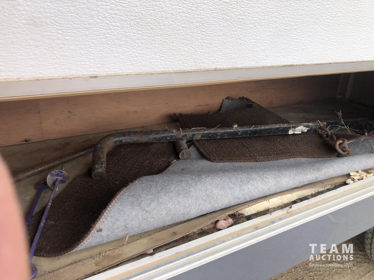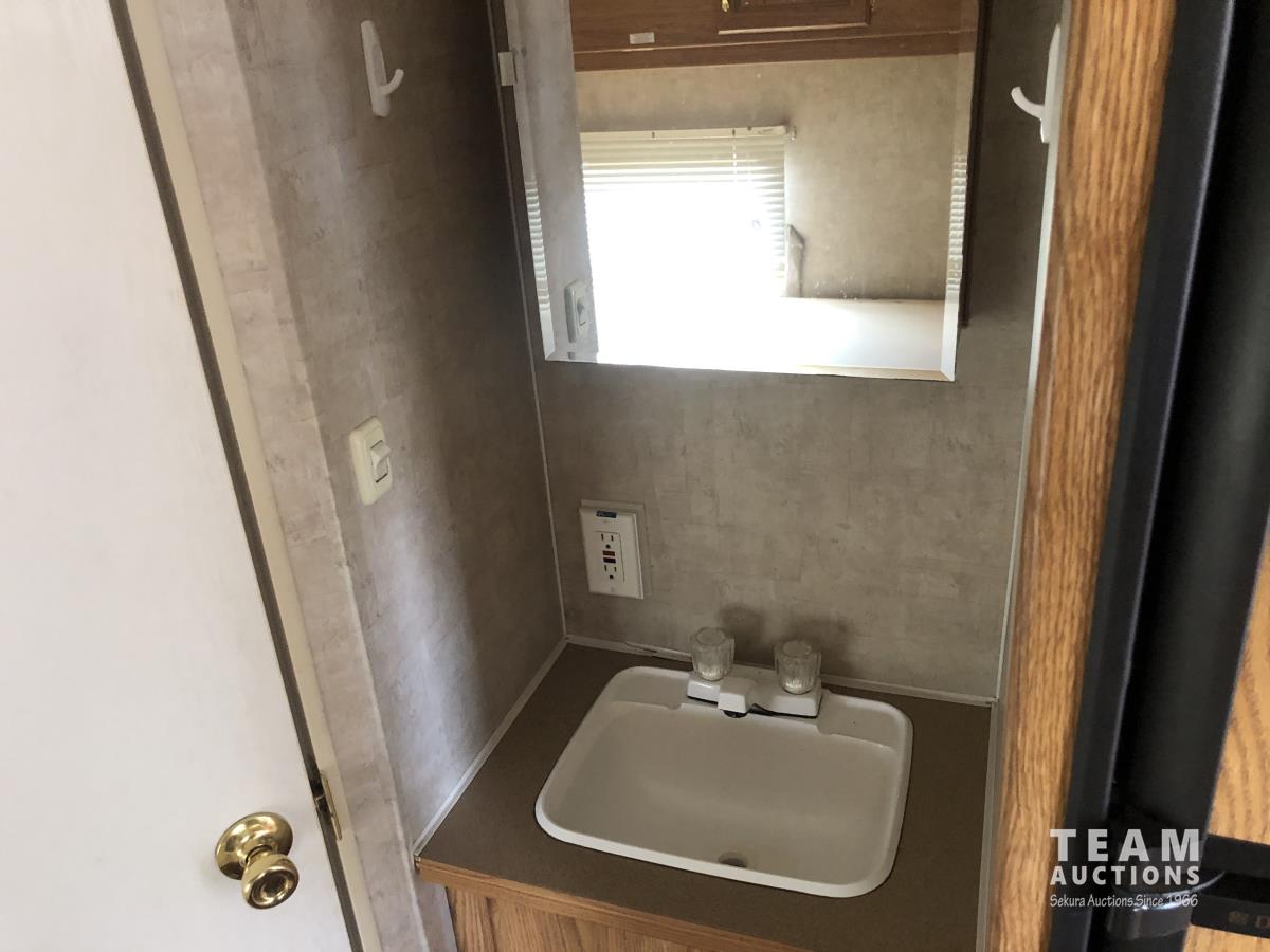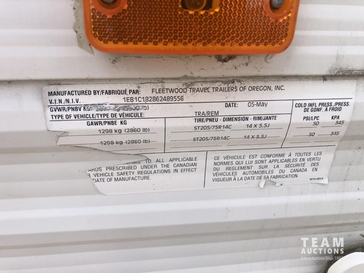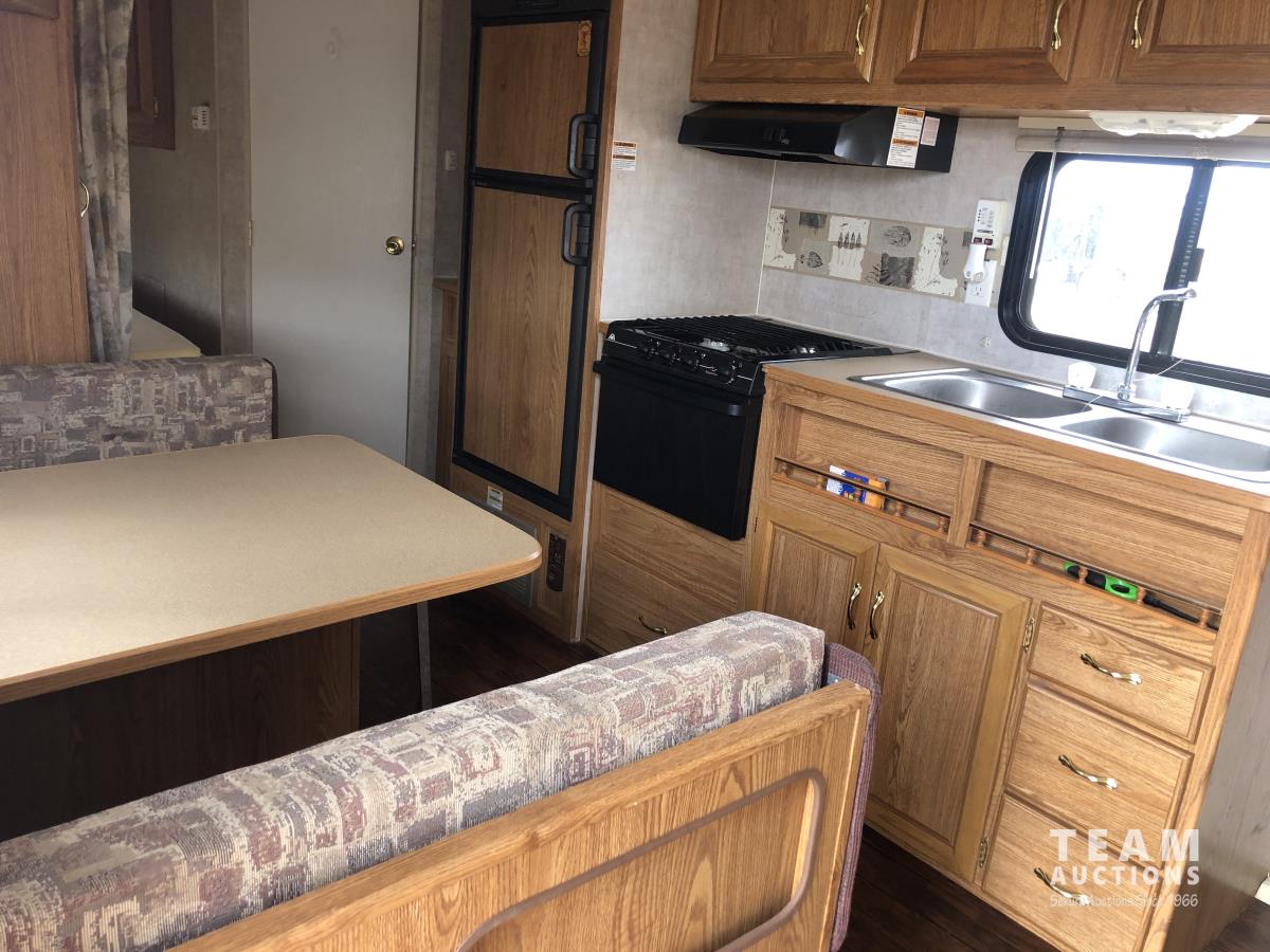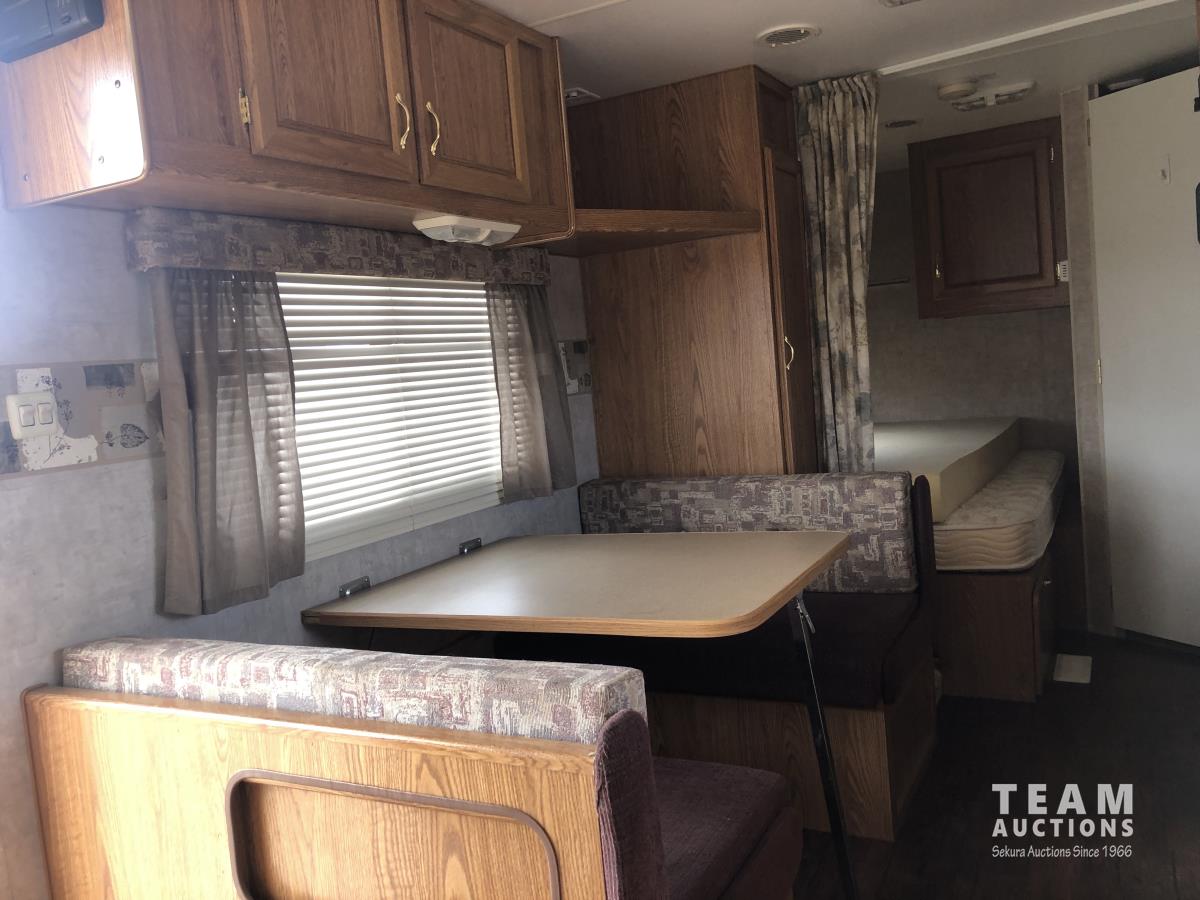 12 ft awning, fridge, bathroom, stereo/CD, (2) 30 lb propane bottles, (4) manual leveling jacks, storage