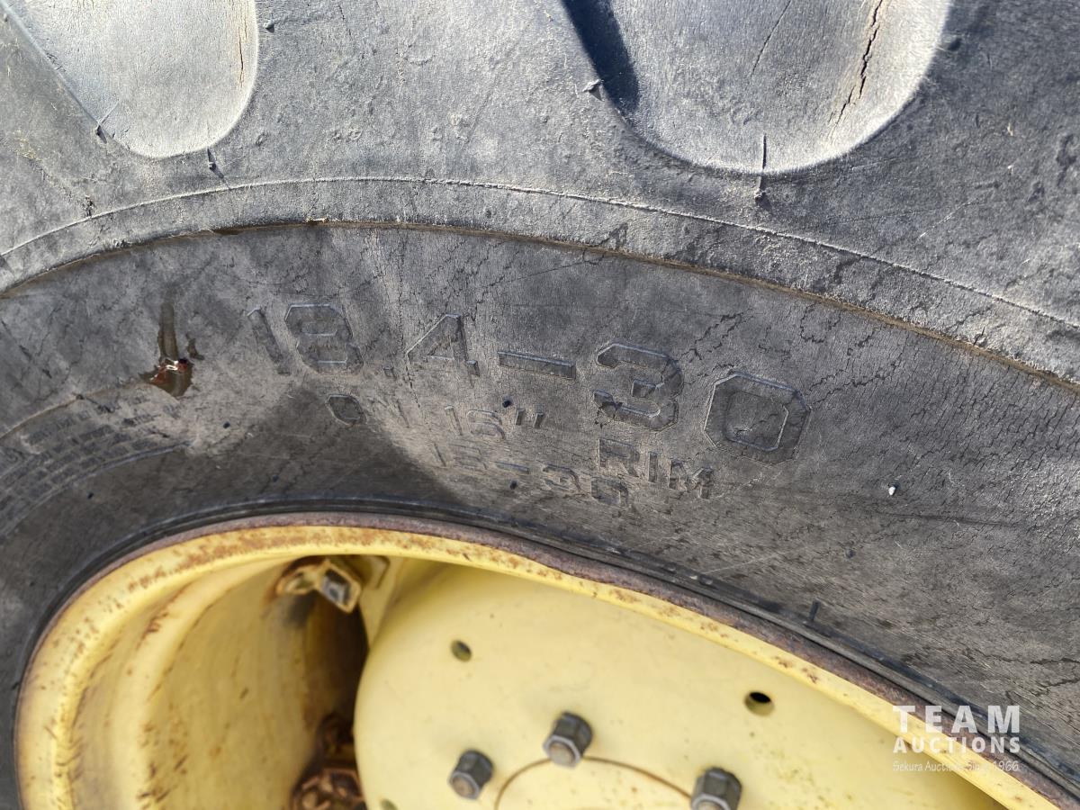 loader mounts, 3.9 L 4 cylinder 79 HP, diesel engine, 60 PTO HP, open station platform, 540 PTO, 2 rear hydraulic outlets, 11L-16 front tires, 18.4-30 rear tires