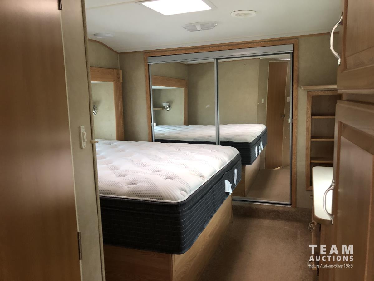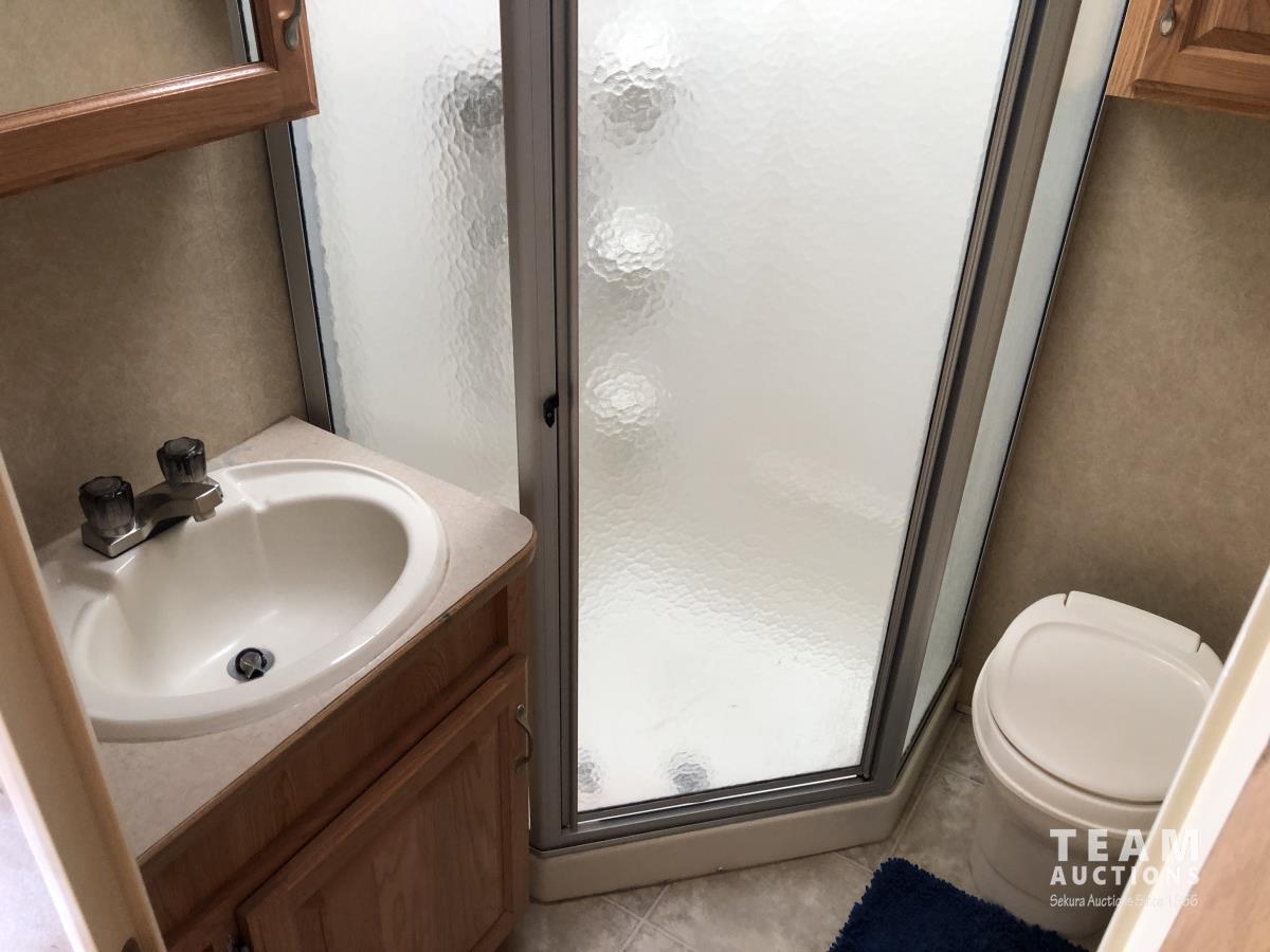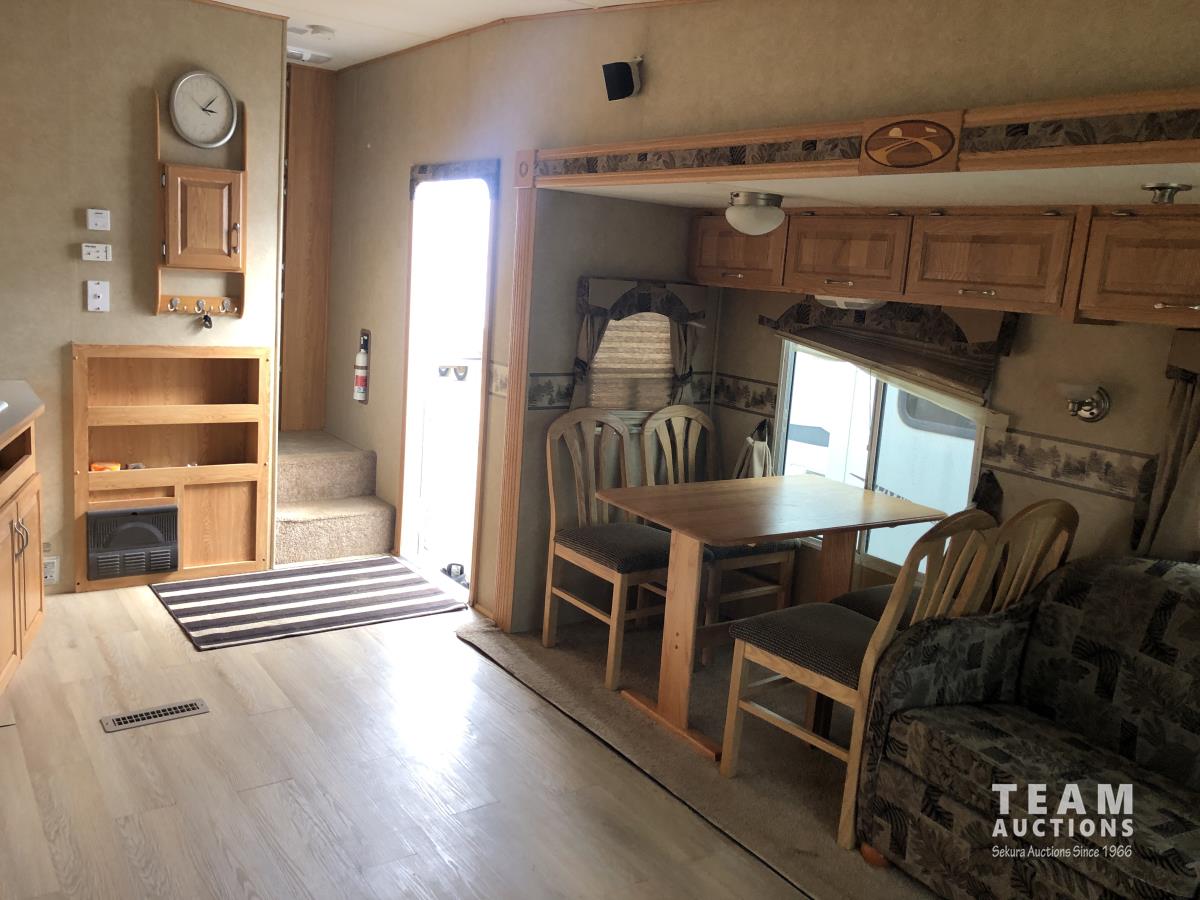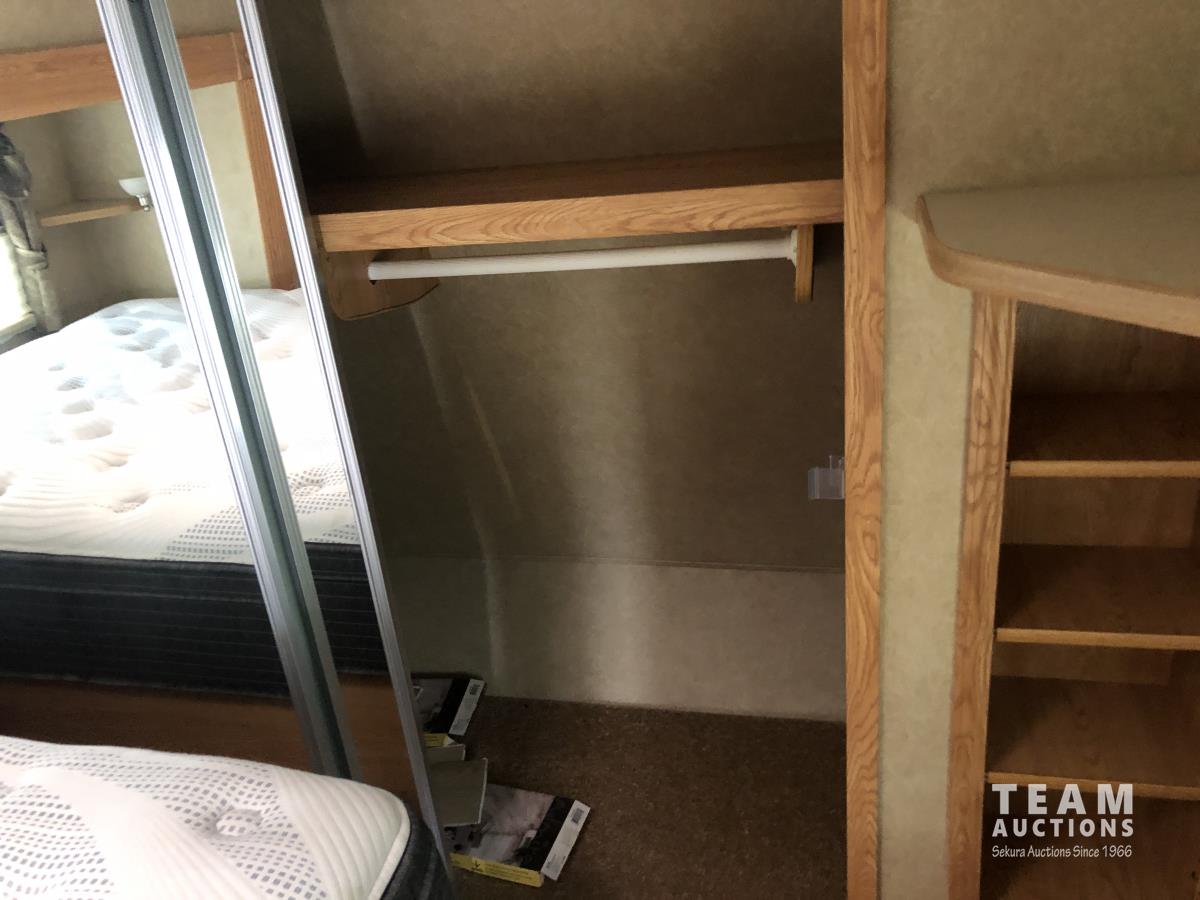 (3) Slides 11 ft 9.5 ft and 5.5 ft, fridge, stove, microwave, bathroom, sleeps 4, stereo, A/C, 13 ft awning, power landing gear, roof access ladder, 225/75R15