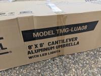 28 TMG LIVING TMG-LUA08 8 Ft X 8 Ft Cantilever Offset Aluminum Umbrella with LED Lights (Unused)