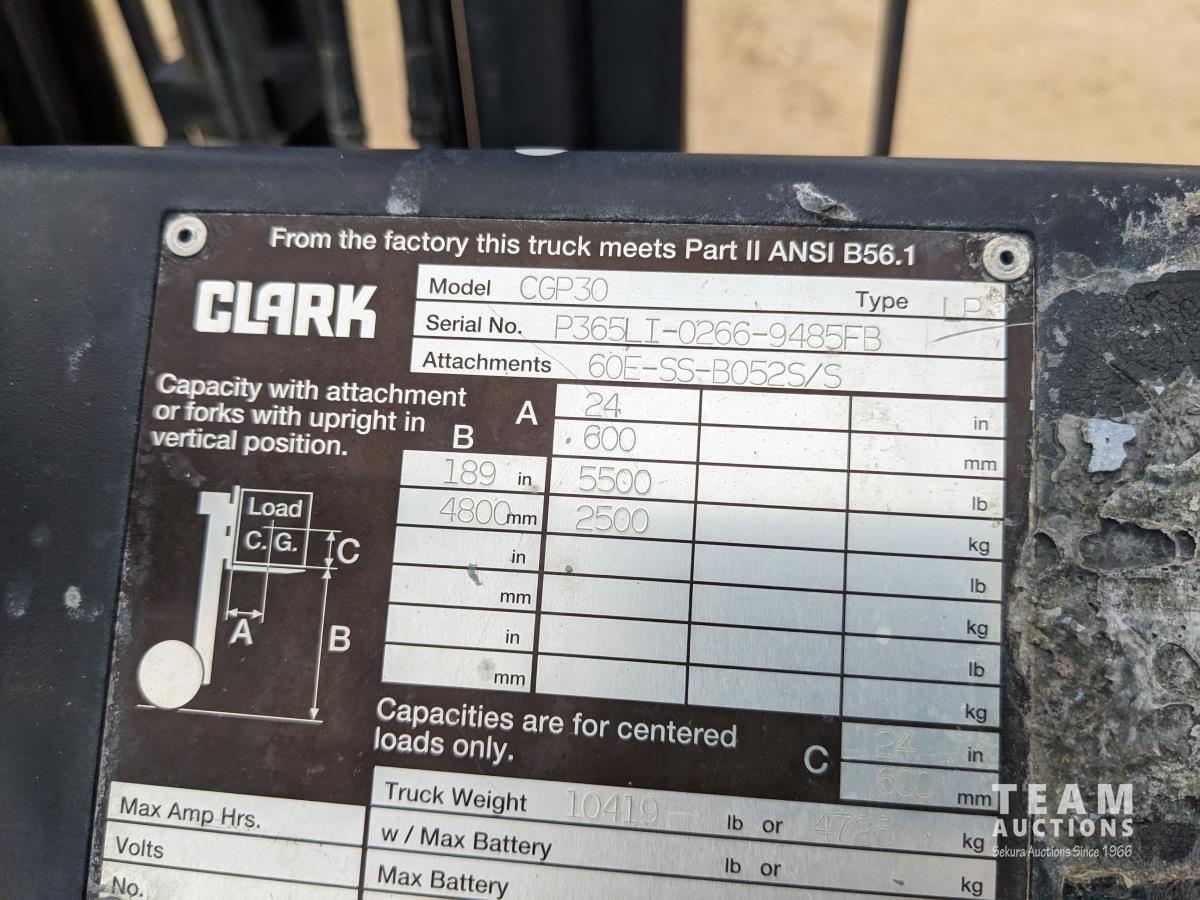 194 Clark CGP30 5500 lb 2WD Forklift (Inoperable)