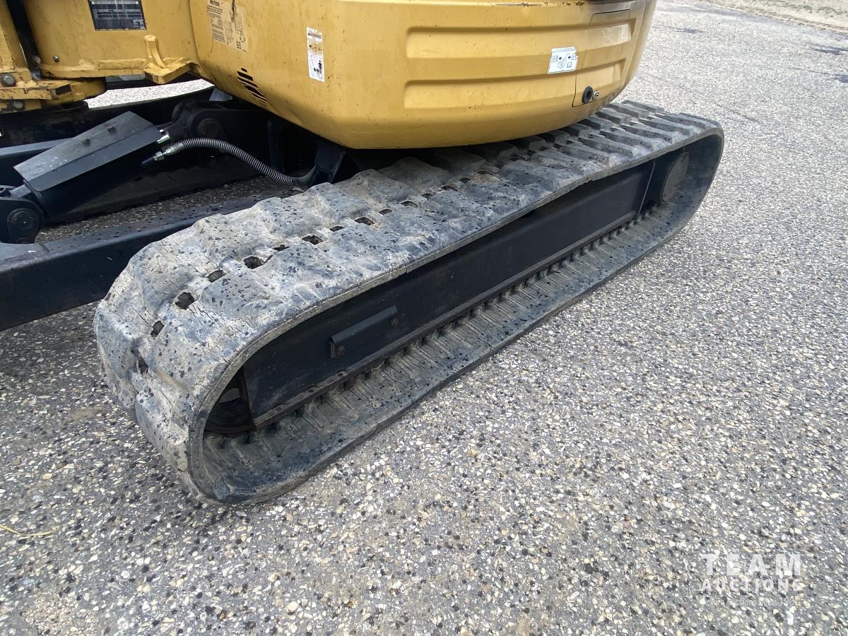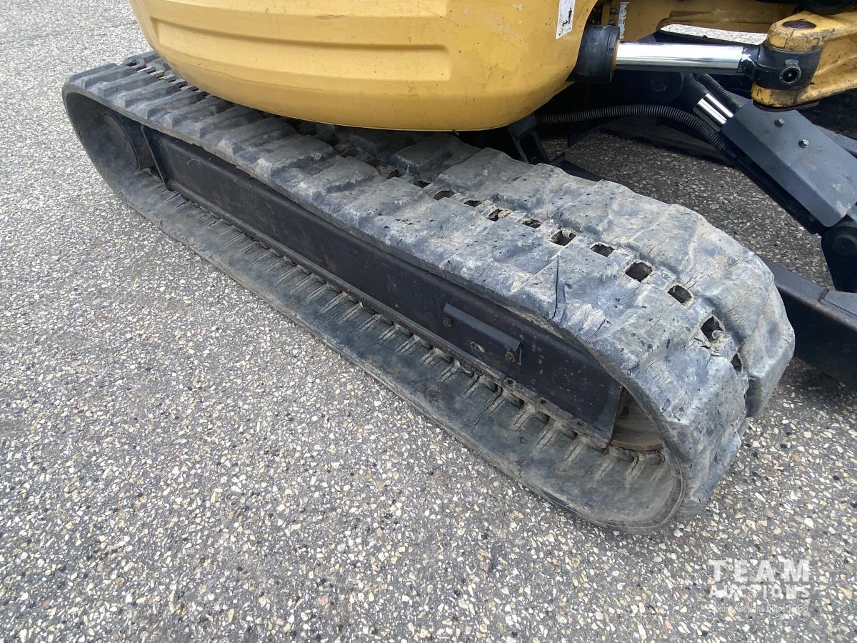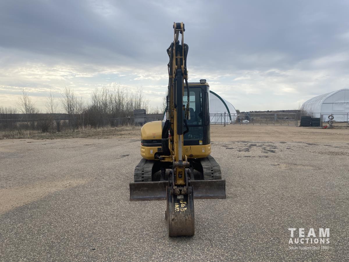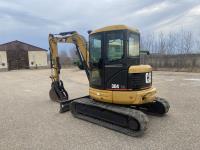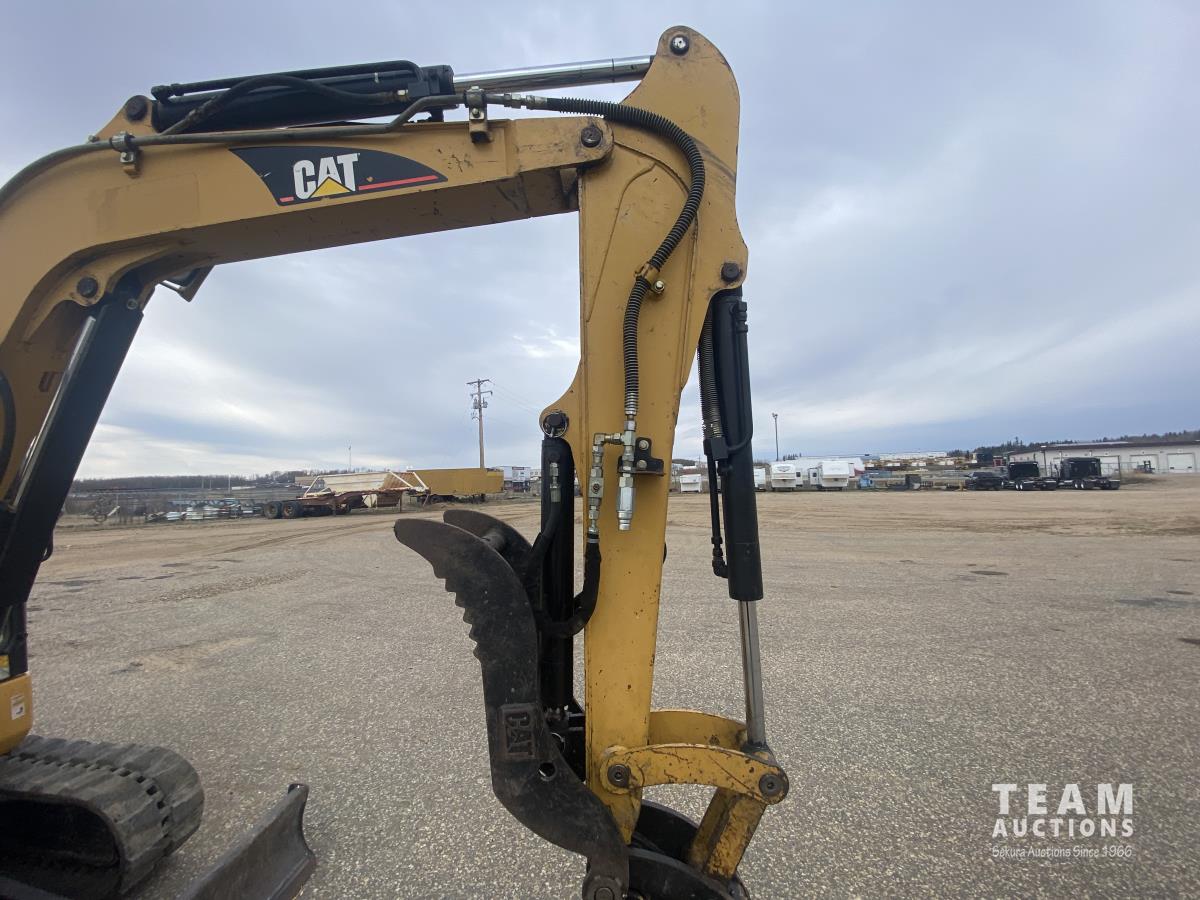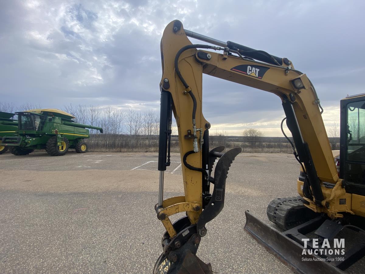 18 inch digging bucket, hydraulic thumb, manual Q/A, enclosed cab, A/C, control pattern changer, swing boom, 5 ft 9 inch stick, auxiliary hydraulic plumbing, dozer blade, 16 inch rubber tracks