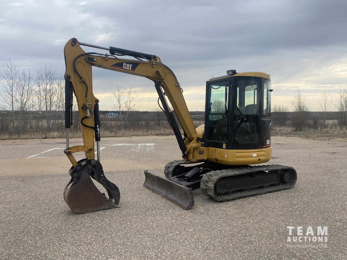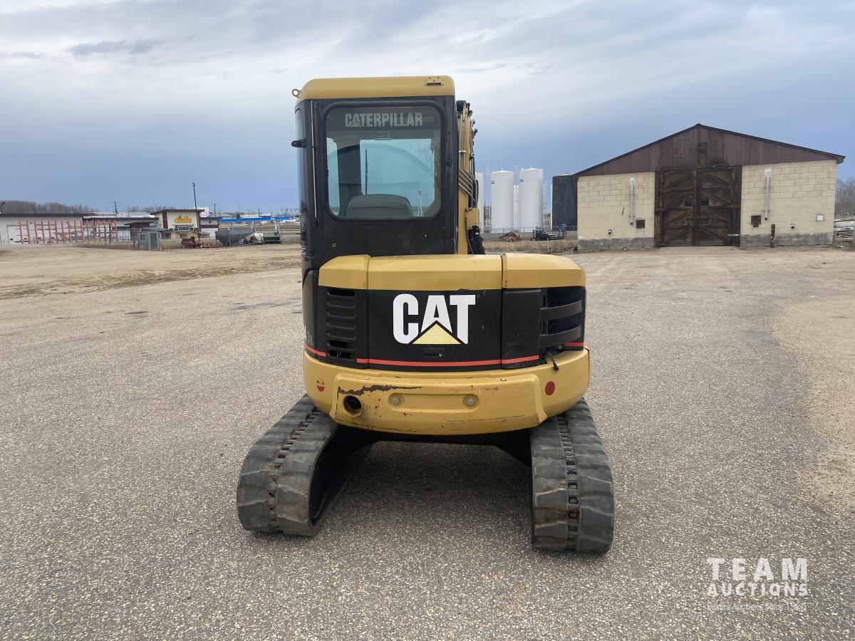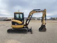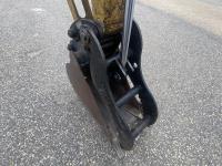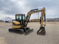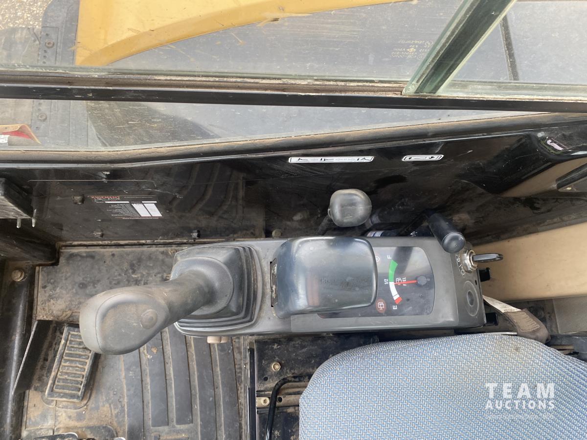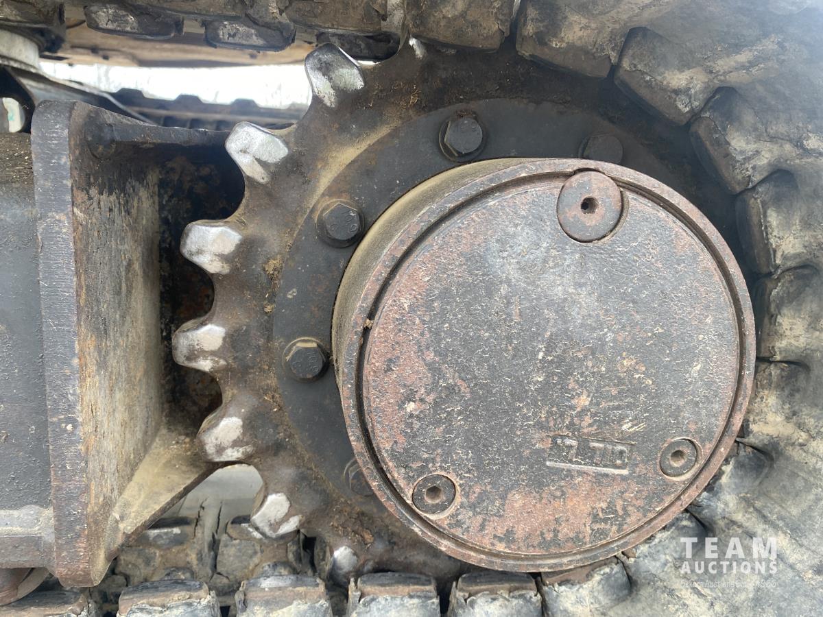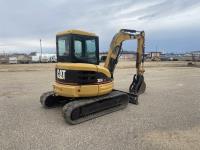 18 inch digging bucket, hydraulic thumb, manual Q/A, enclosed cab, A/C, control pattern changer, swing boom, 5 ft 9 inch stick, auxiliary hydraulic plumbing, dozer blade, 16 inch rubber tracks