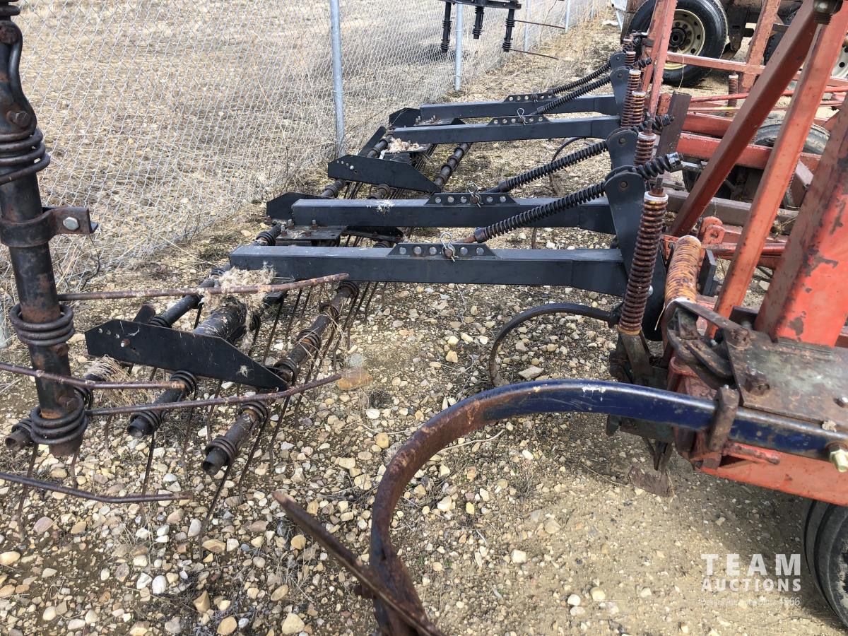 11 inch shovels, 8 inch spacing, Farm King 3 bar mounted harrows, 9.5L-15 tires