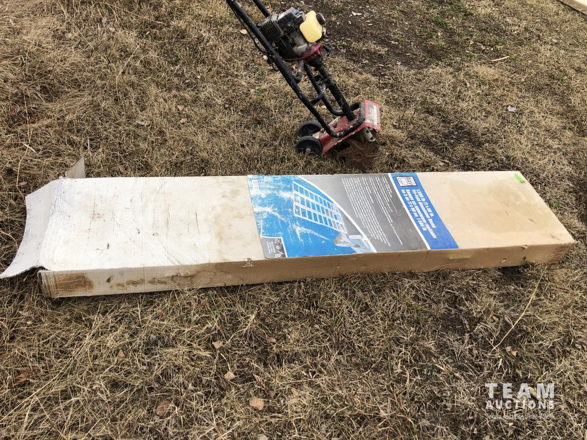 149 1500 lb Tri Fold Aluminum Ramps & Yard Machine Rotary Tiller (Inoperable)