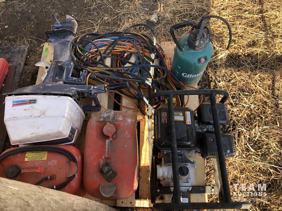137 2 Inch Gas Water Pump, Eska 9.9Hp Outboard, (2) Outboard Fuel Tanks, Cords