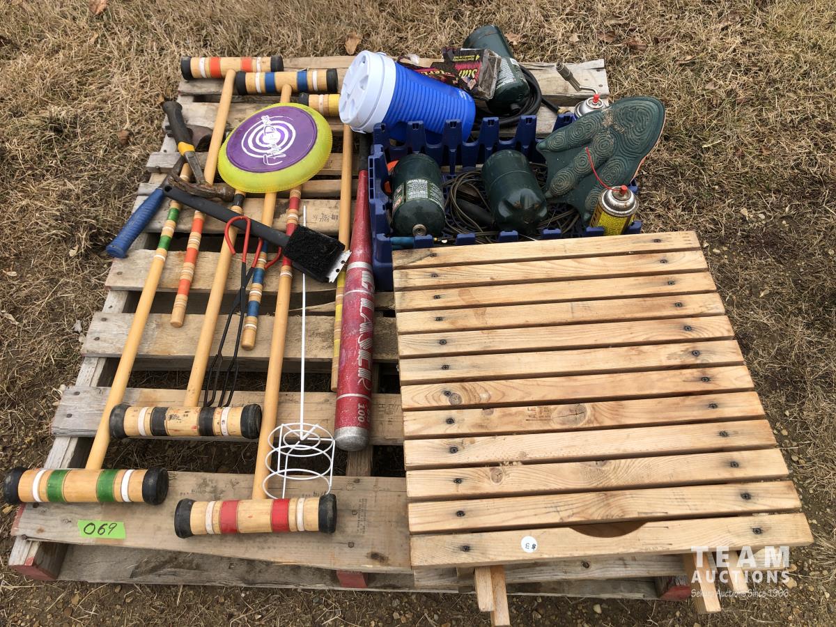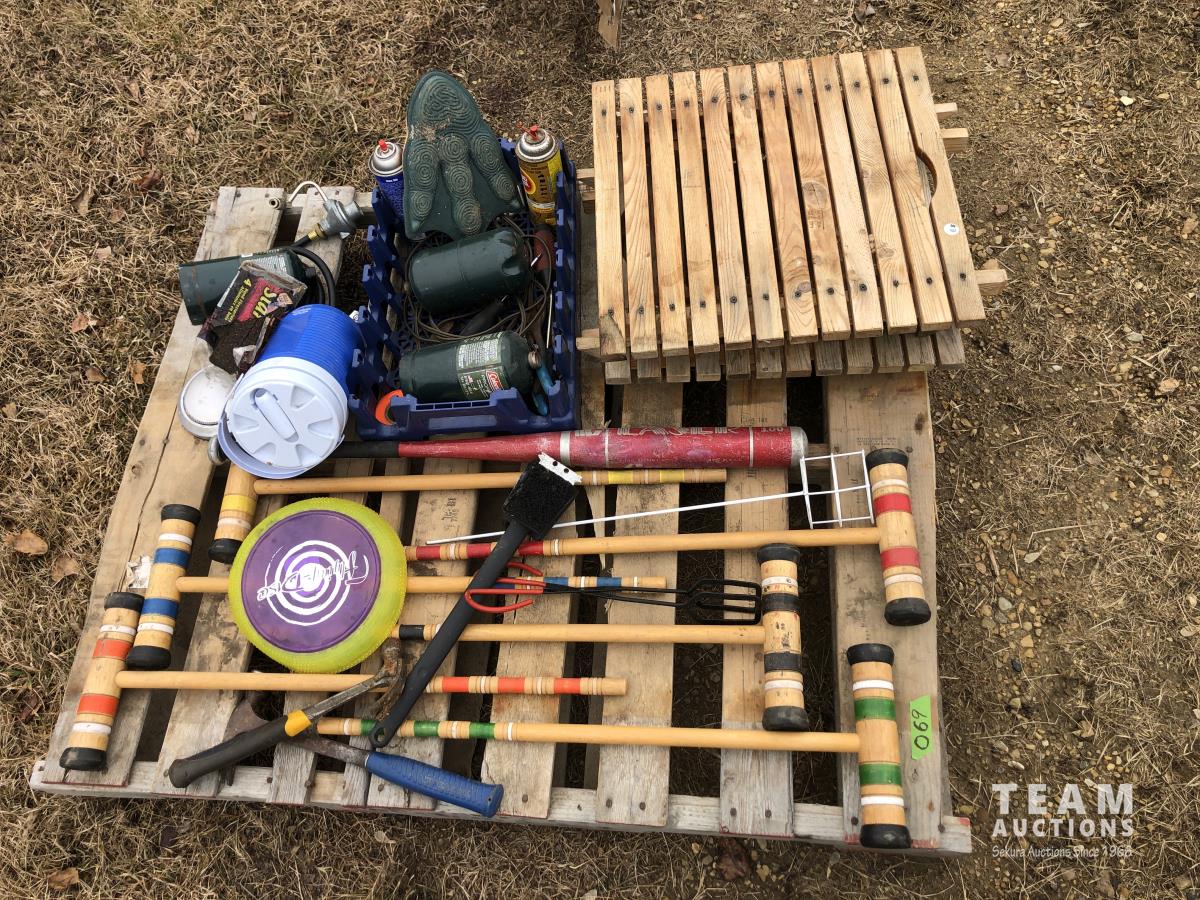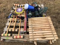 (2) Camp stoves, crocket mallets, (2) hammers, baseball bat