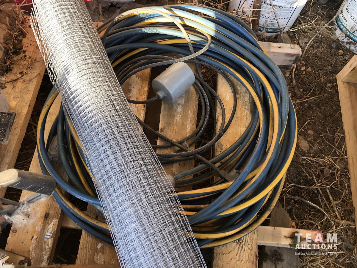 Jack, tackle box, extension cords, Stihl gas chop saw, tuck tape