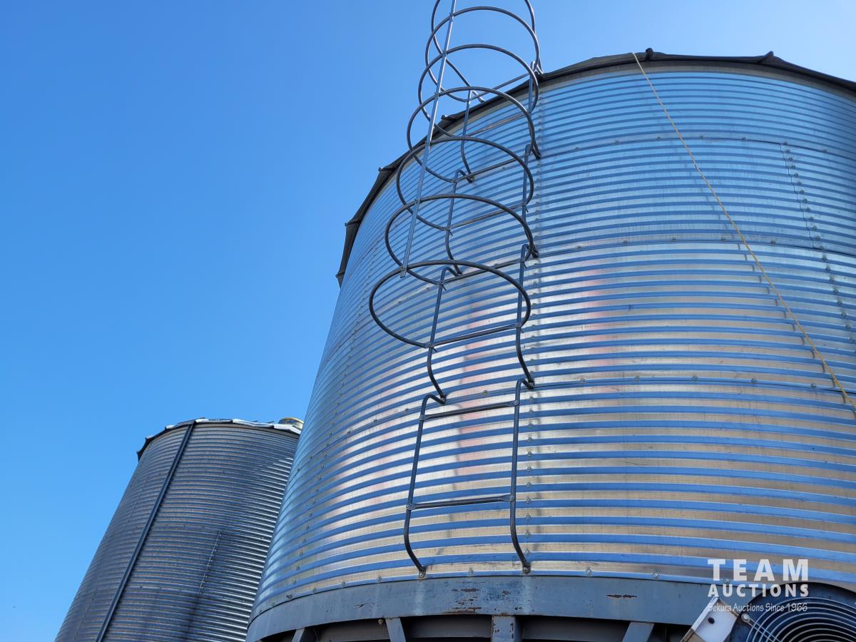 3,400± bu capacity, 10 leg hopper, 2 foundation rings, ladder, lid opener, horizontal aeration, remote hood