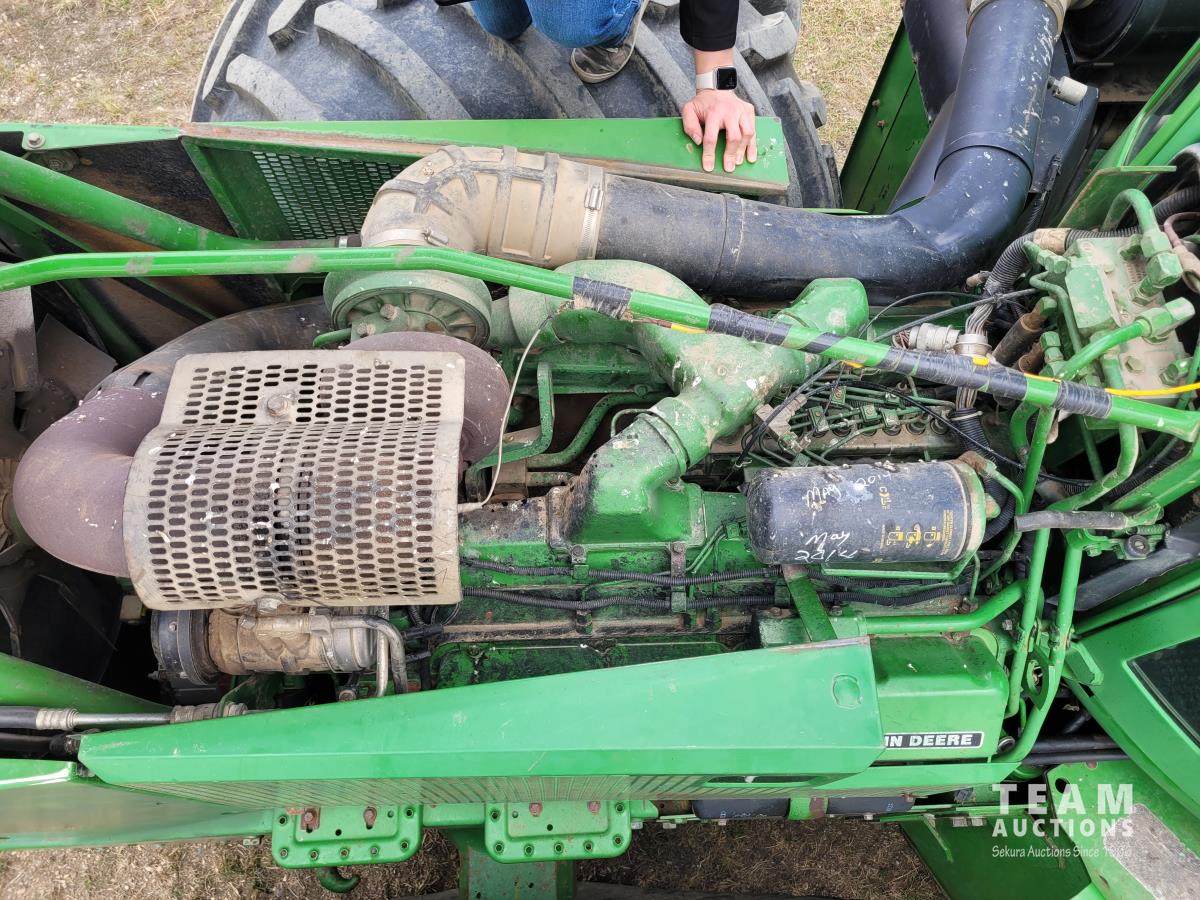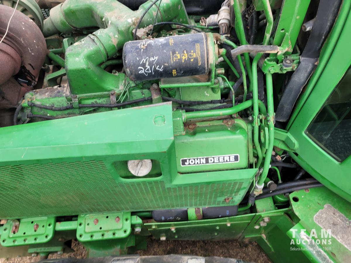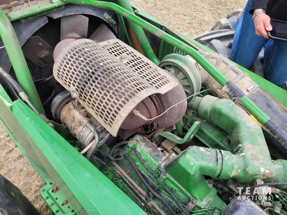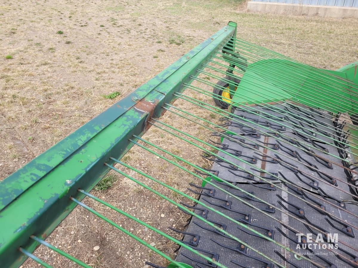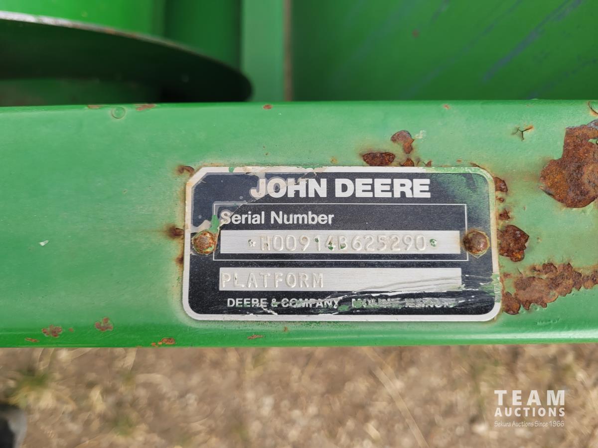 John Deere 914 13 ft pick-up header, variable speed reel, reverser, rock trap, chaff spreader, chopper/straw spreader, A/C, radio, buddy seat, 30.5L-32 front tires, 14.9-24 rear tires