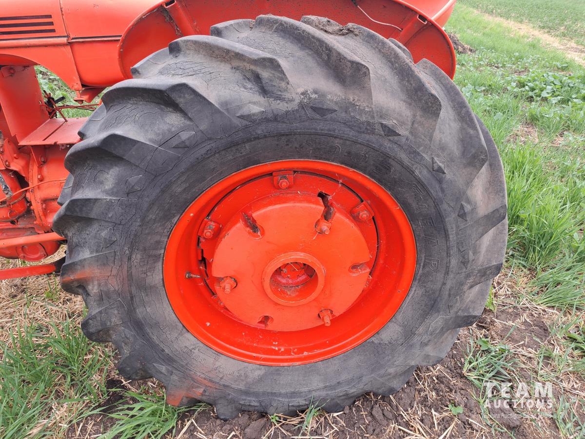 4 cylinder gas engine, belt pulley 21 HP, 4 speed transmission, 540 PTO, 5.00-16, 13-26 rear tires