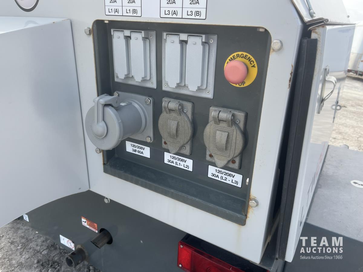 Isuzu diesel engine, 120/208 volt, 23 ft 5-section vertical mast, (4) metal halide lights, pintle hitch, ST205/75R15 tires