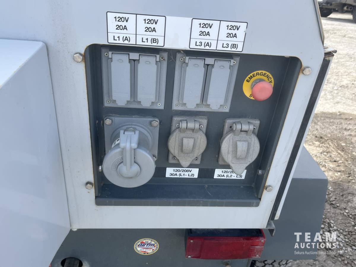Isuzu diesel engine, 120/208 volt, 23 ft 5-section vertical mast, (4) metal halide lights, pintle hitch, ST205/75R15 tires