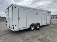 96 inch interior width, ball hitch, side door, barn doors, electric brakes, torsion suspension, washroom, 7000 lb axles, ST235/80R16 tires